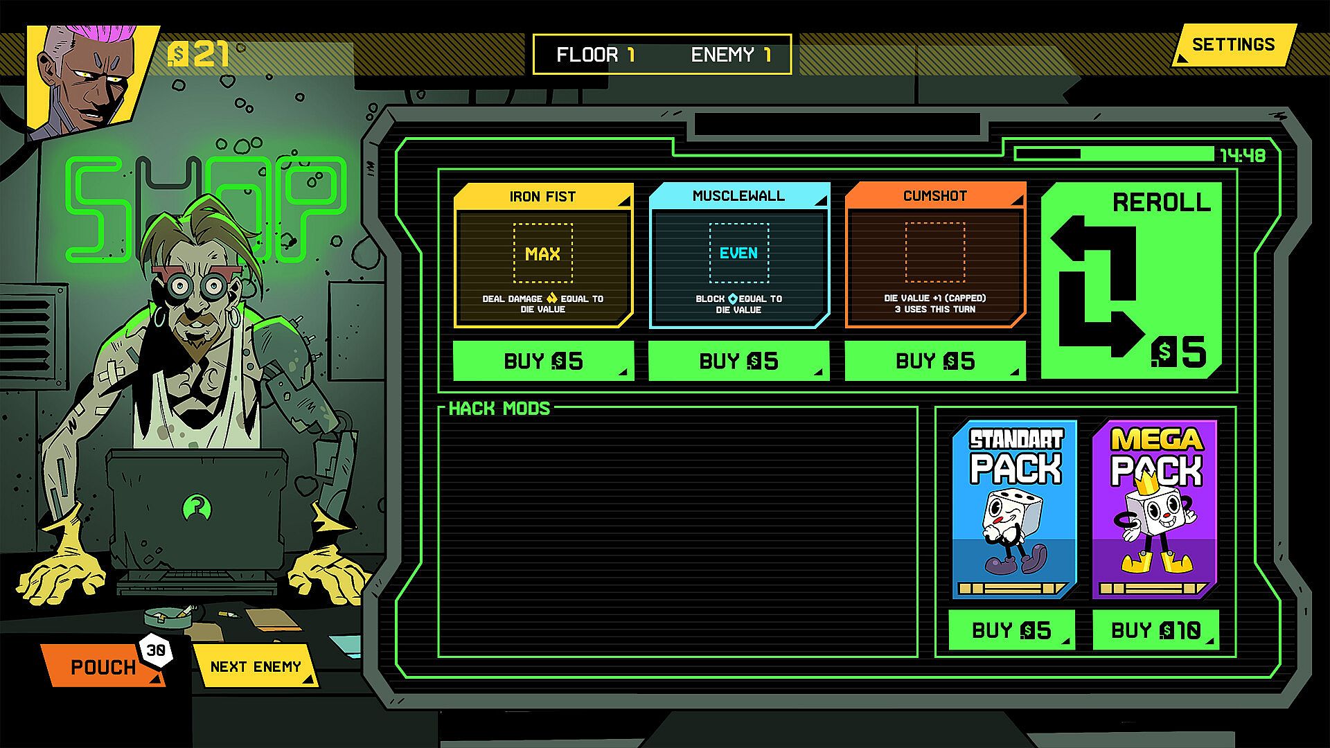 DICEPUNK is a turn-based roguelike deck builder set in a cyberpunk world where every action is powered by dice rolls.