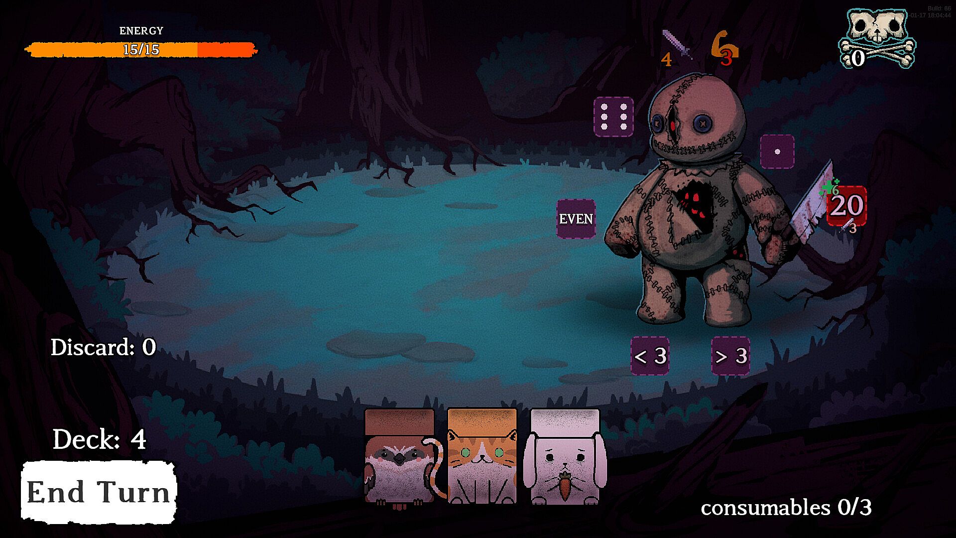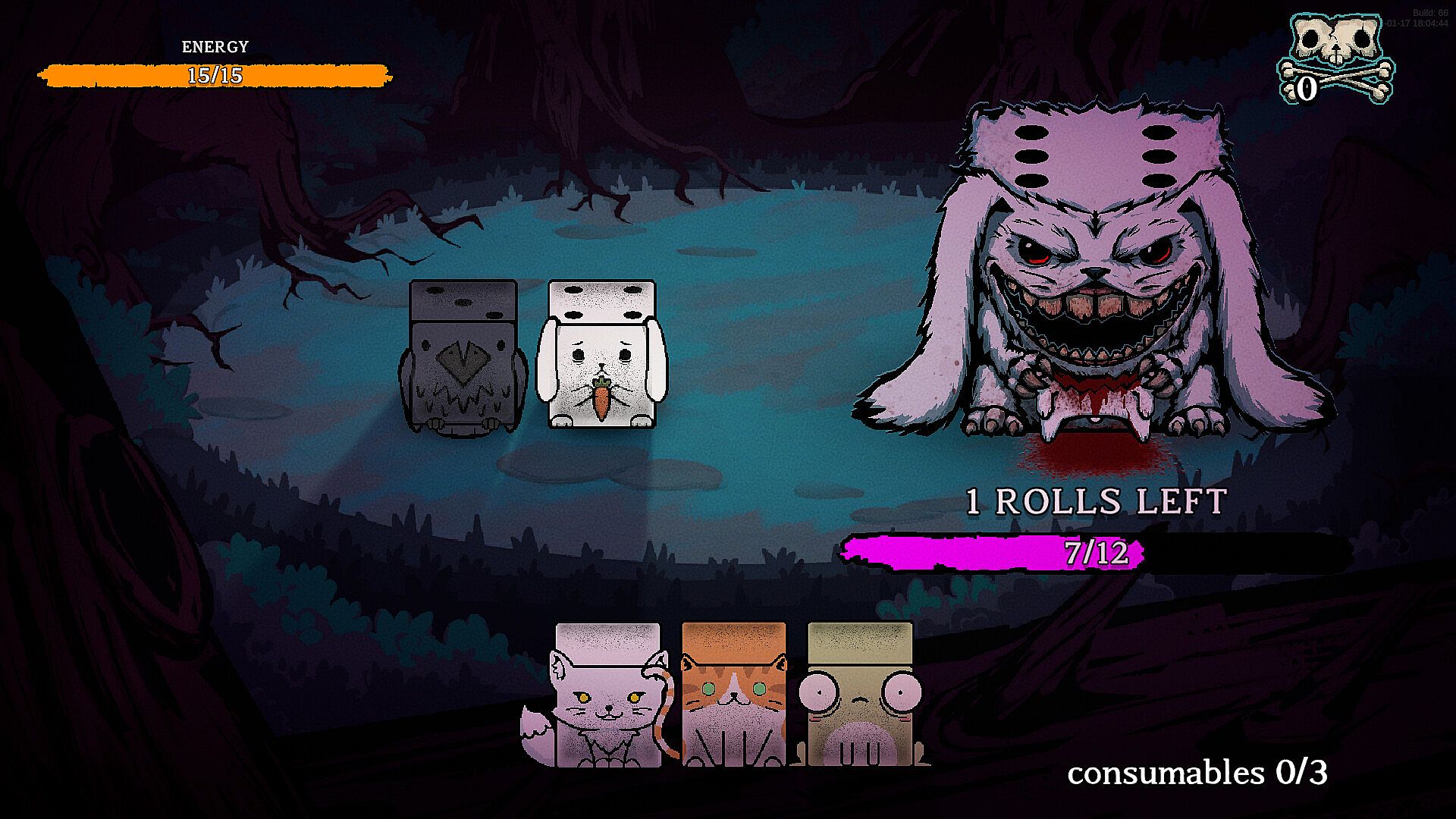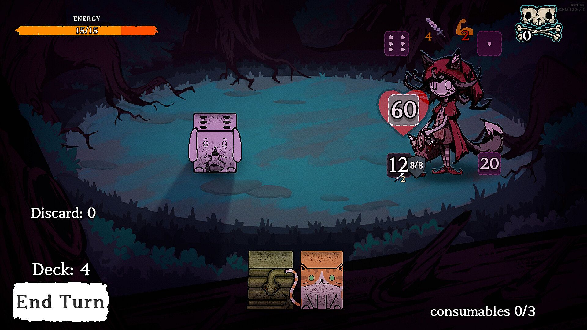 Dicewood is a fantasy horror turn-based roguelike deck-builder where adorable forest animals band together to escape the relentless hunter.