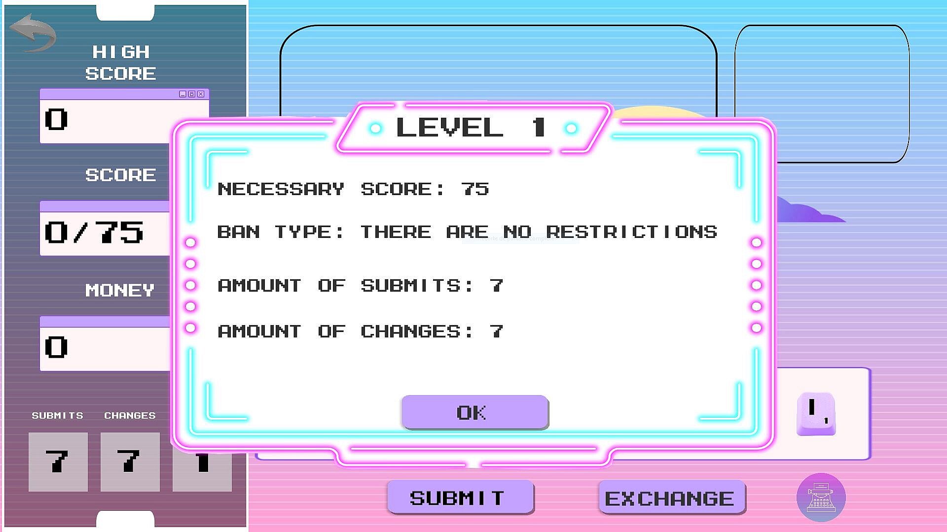 Dictation is a roguelike made for people who love word related games, where you'll have to build words from scratch based on your perks to reach the maximum amount of points.