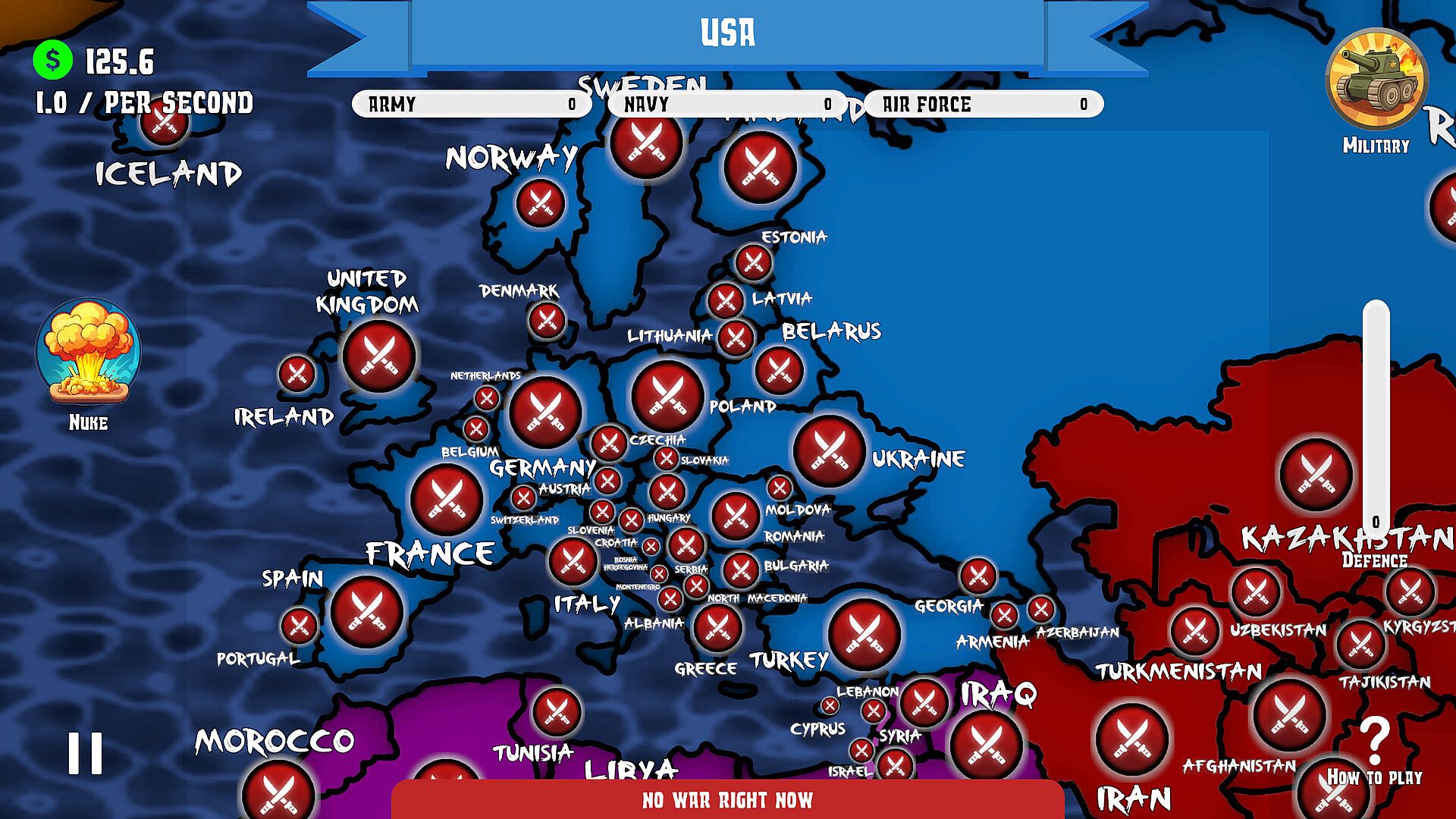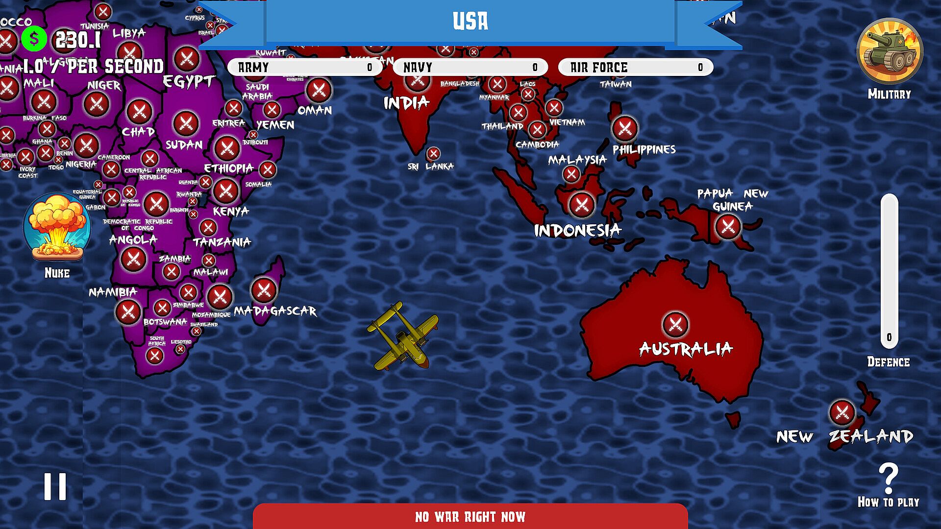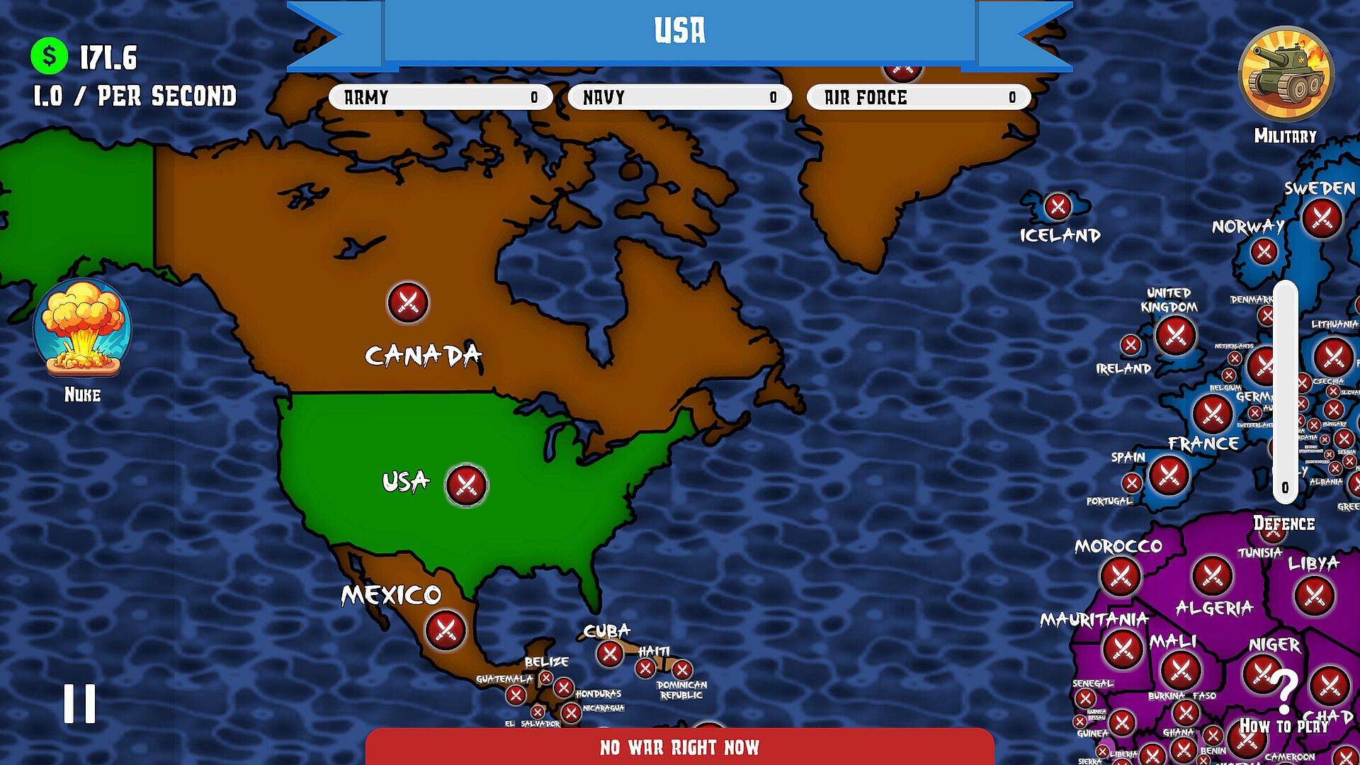 But the path to world domination is never easy. Enemies are watching your every move and won’t hesitate to strike back. Defend your empire by strategically upgrading your military and fortifying your borders. And when all else fails, unleash the devastating power of a nuclear strike, reducing your enemies to nothing and leaving their lands ripe for your taking.