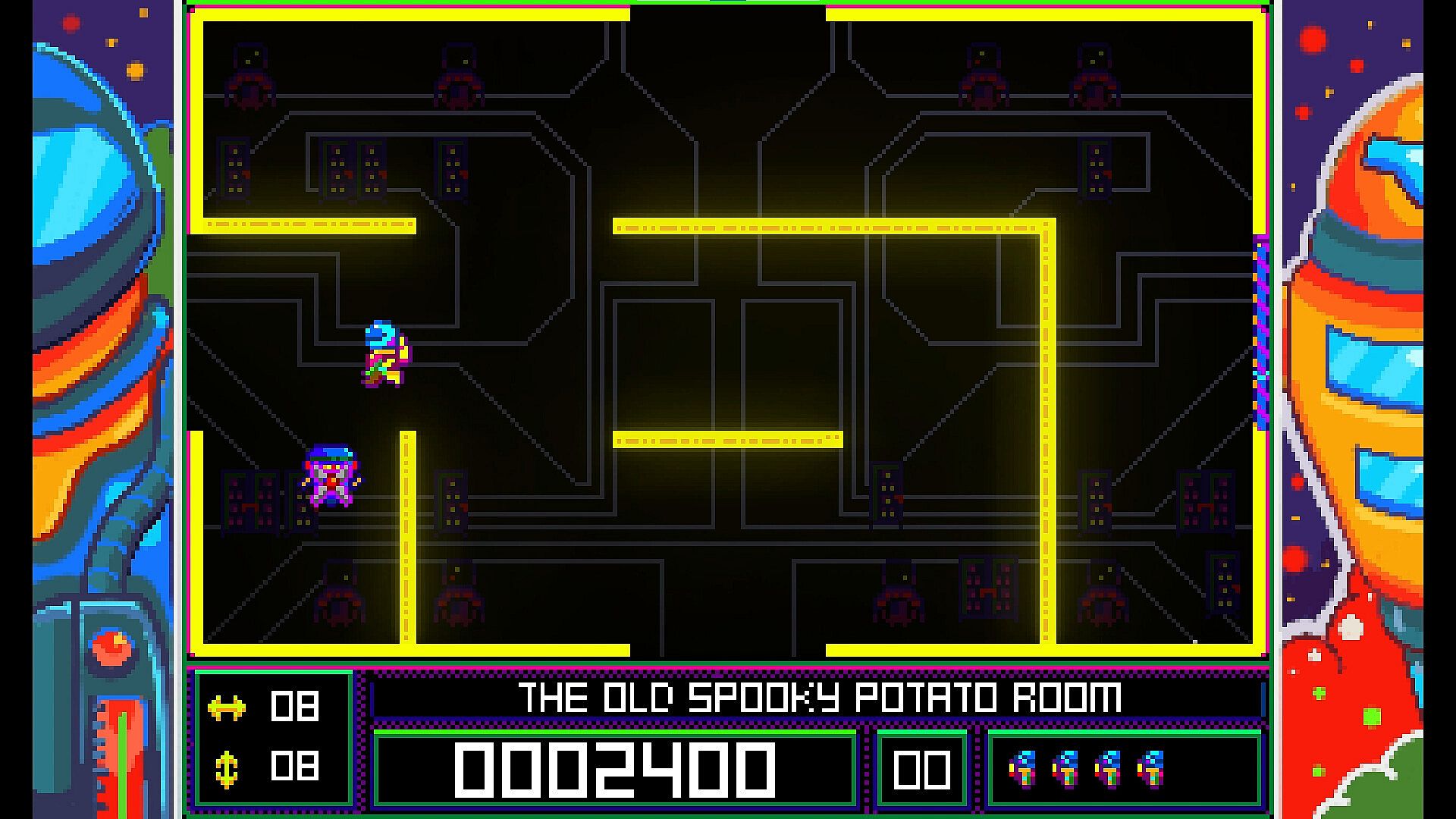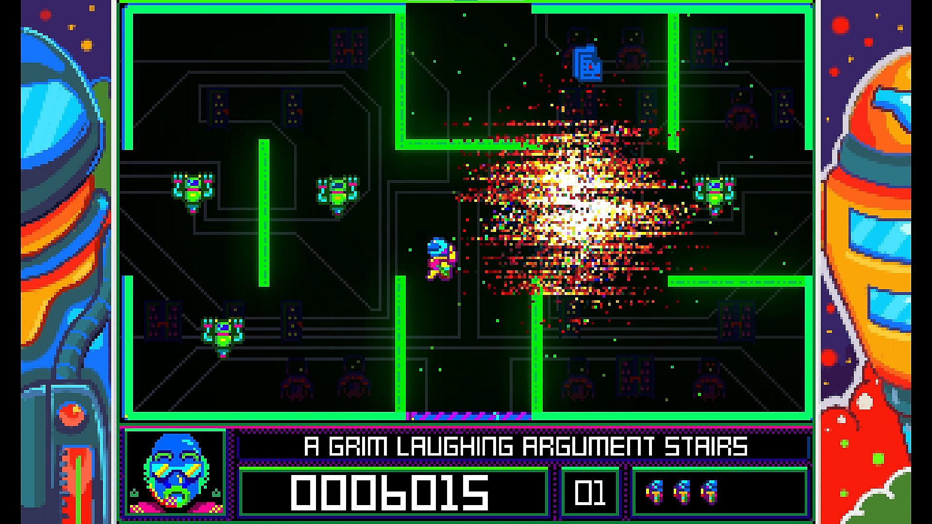 • Beautiful, chunky pixel art graphics with a psychedelic slant harking back to the old 8-bit systems.