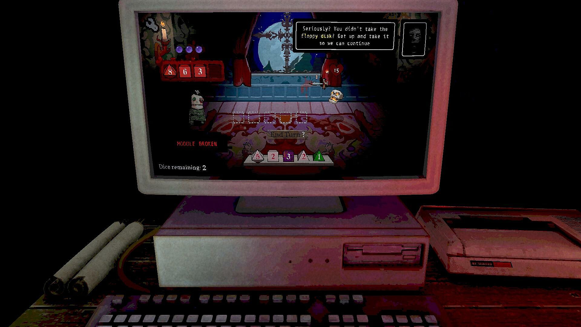 You found yourself in an estate, where an ancient retro computer runs a strange, cursed game…