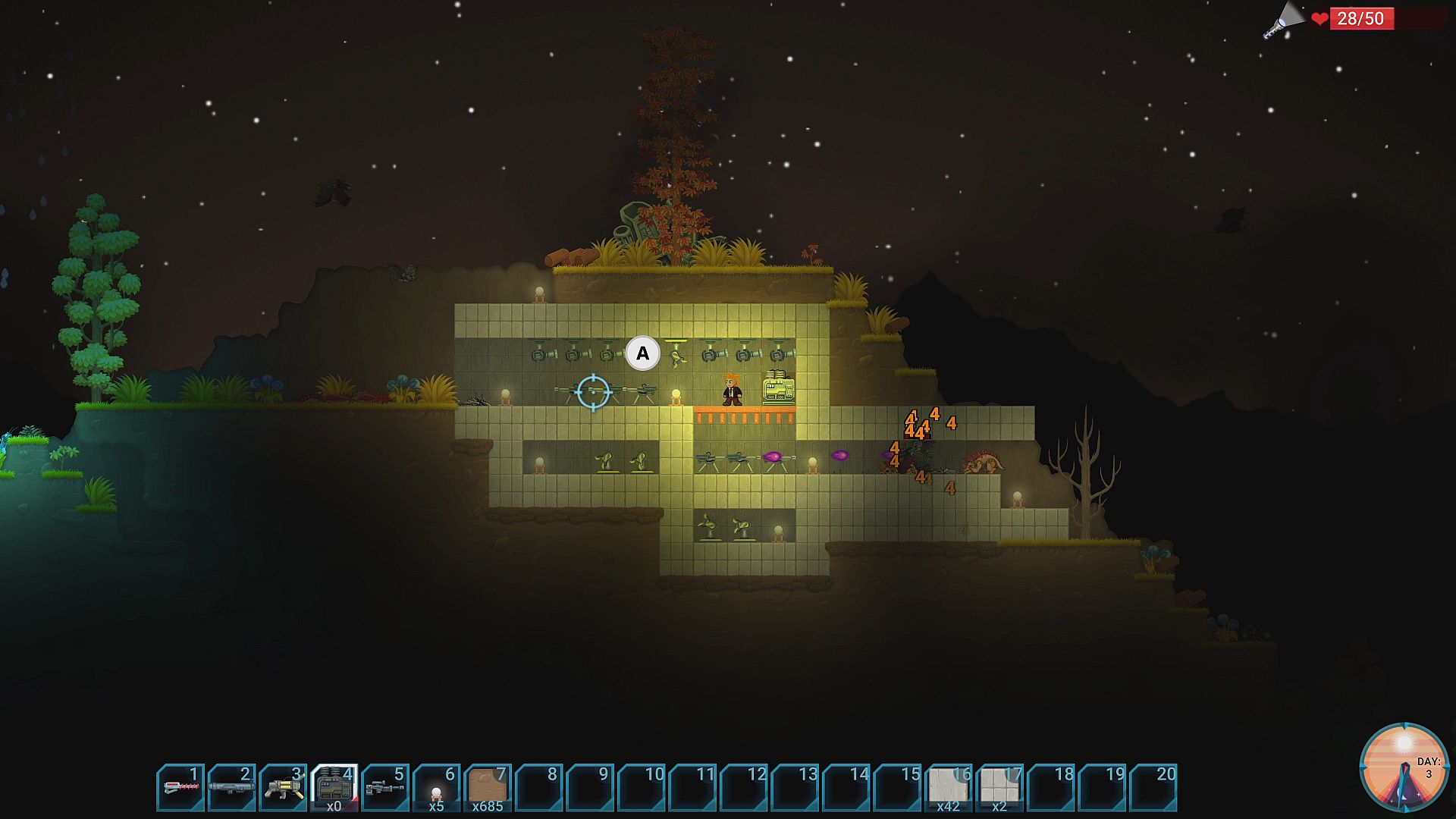 - Difficulty progression: only the species of monsters you have already killed before attack during the night (they probably took it badly). So you can progress at your own pace and choose when you are ready to move forward and fight stronger monsters.