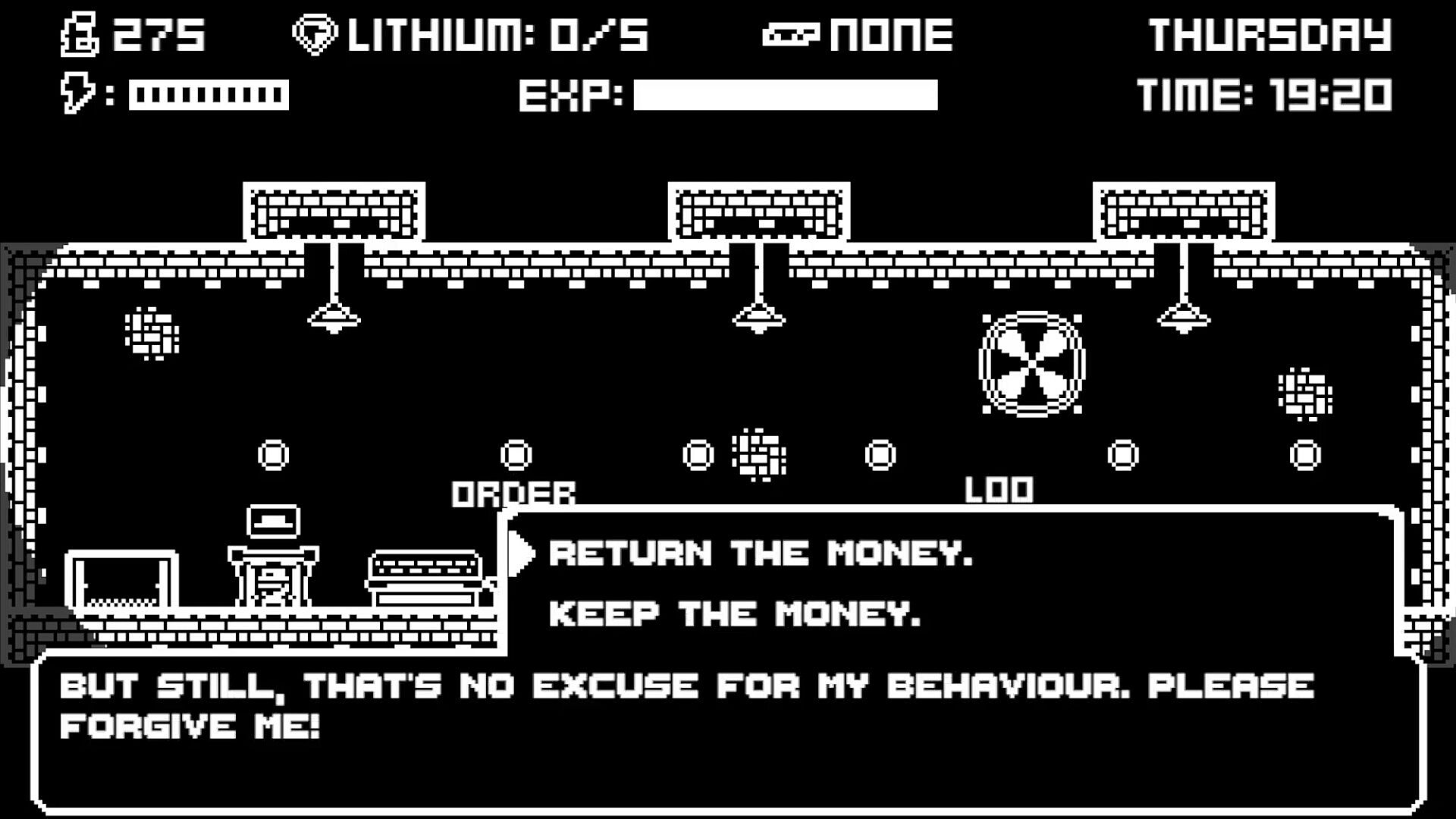 To escape, you need to earn £3000 from digging precious lithium. To survive, you need to manage your time, energy and money during the rigid day-and-night cycle.