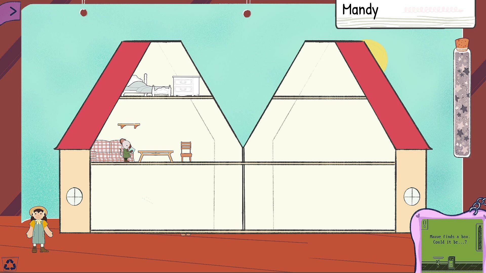 In DIGI-DOLL, a relaxing decorating simulator, Mauve, a vintage collectible doll, is freed from her box and discovers a huge attic filled with friends and furniture. Meet ragdolls, each with dreams of having their dollhouse transformed into the perfect home. Step into the role of decorator and use the virtual DIGI-DOLL to explore the collector's attic, make friends, and discover furnishings and abilities!