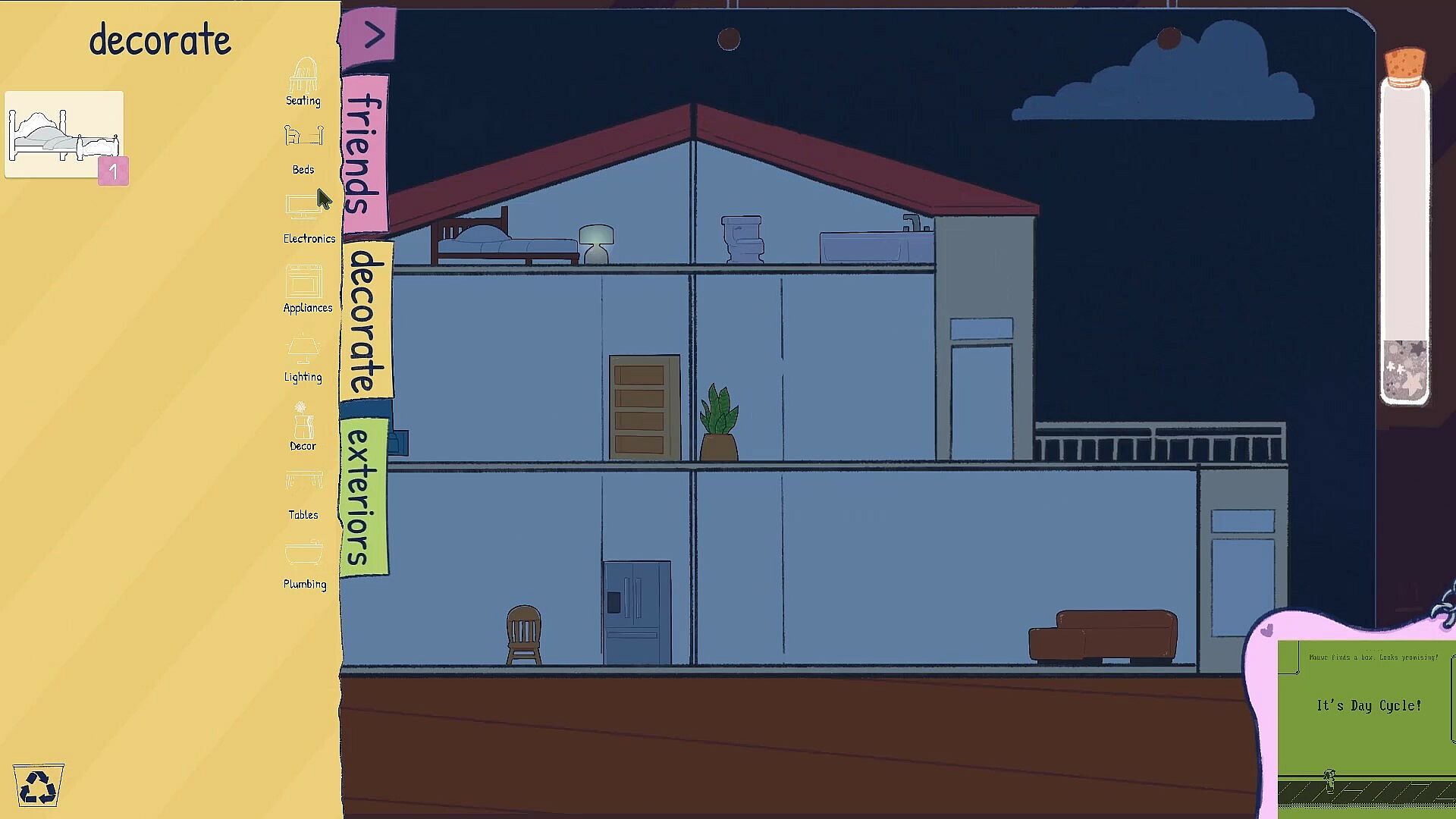 Explore the world through the retro DIGI-DOLL console, a clicker minigame, where the text-based choices you make determine the decor and characters you'll have in the real world. Customize your home with furniture and friends to make it truly your own!
