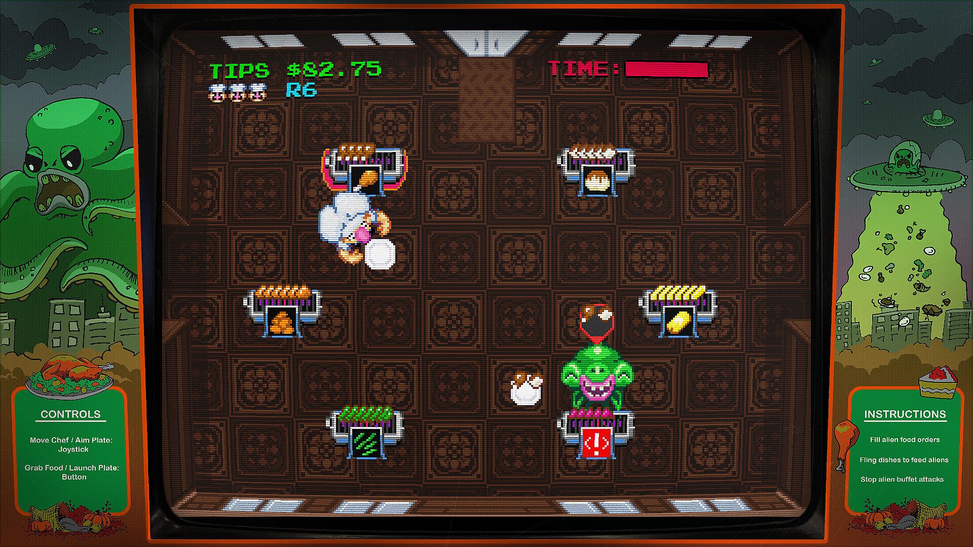 • Fling dishes to feed the aliens