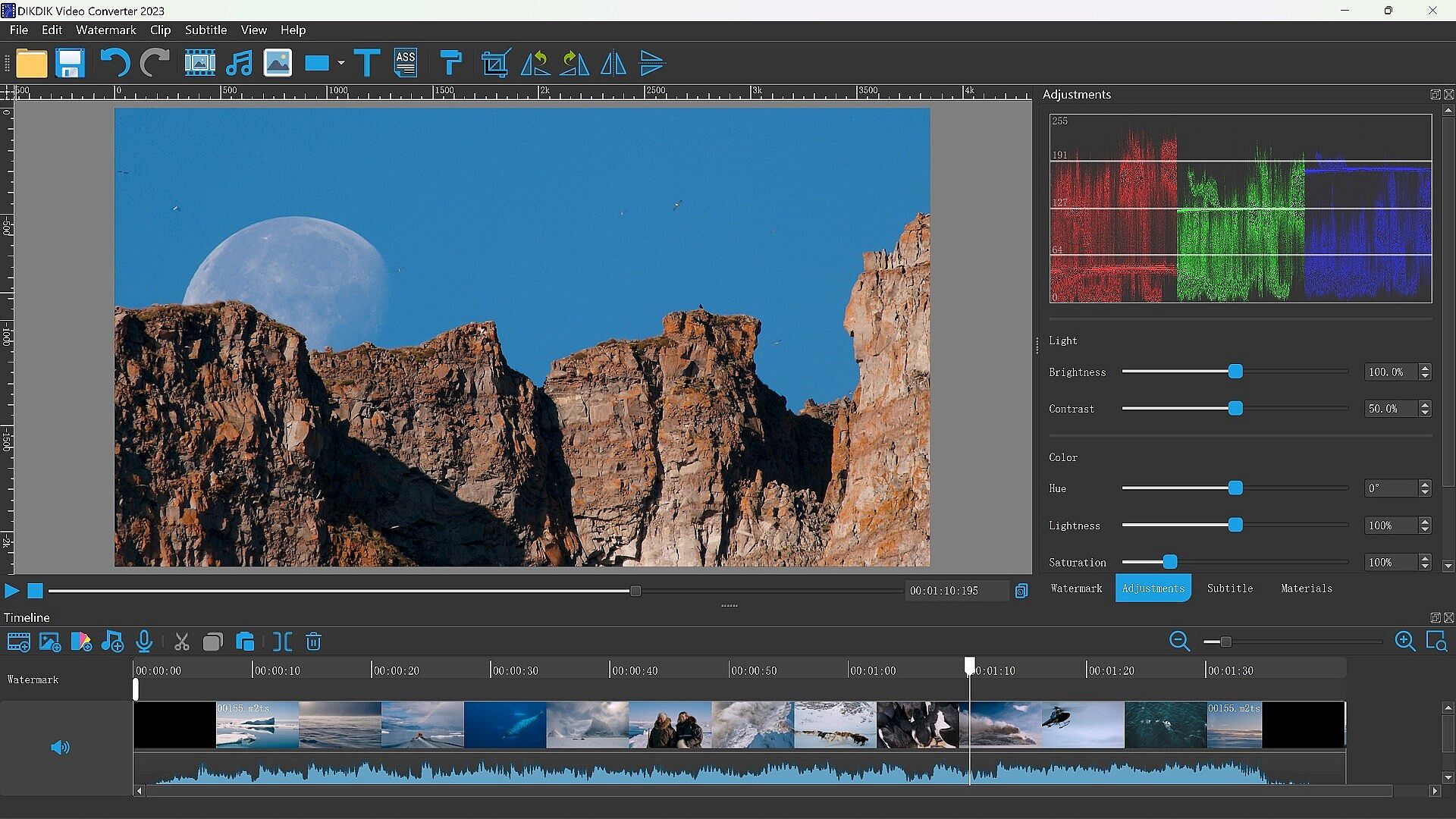 A one-stop video converter for everyone. It can speech to text, video to pdf, add watermarks, cropping, splitting and merging video in batch. It can add video, image, words and subtitle in WYSIWYG, and can set time of appearance, position, size and animated effects for watermark and subtitle to video, and preview at will.