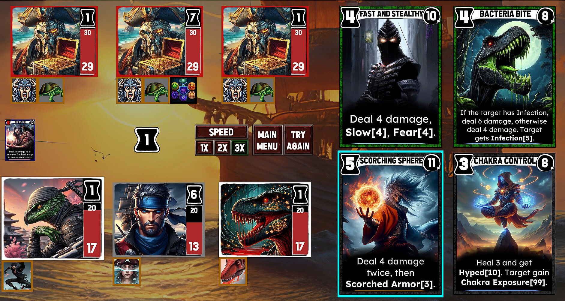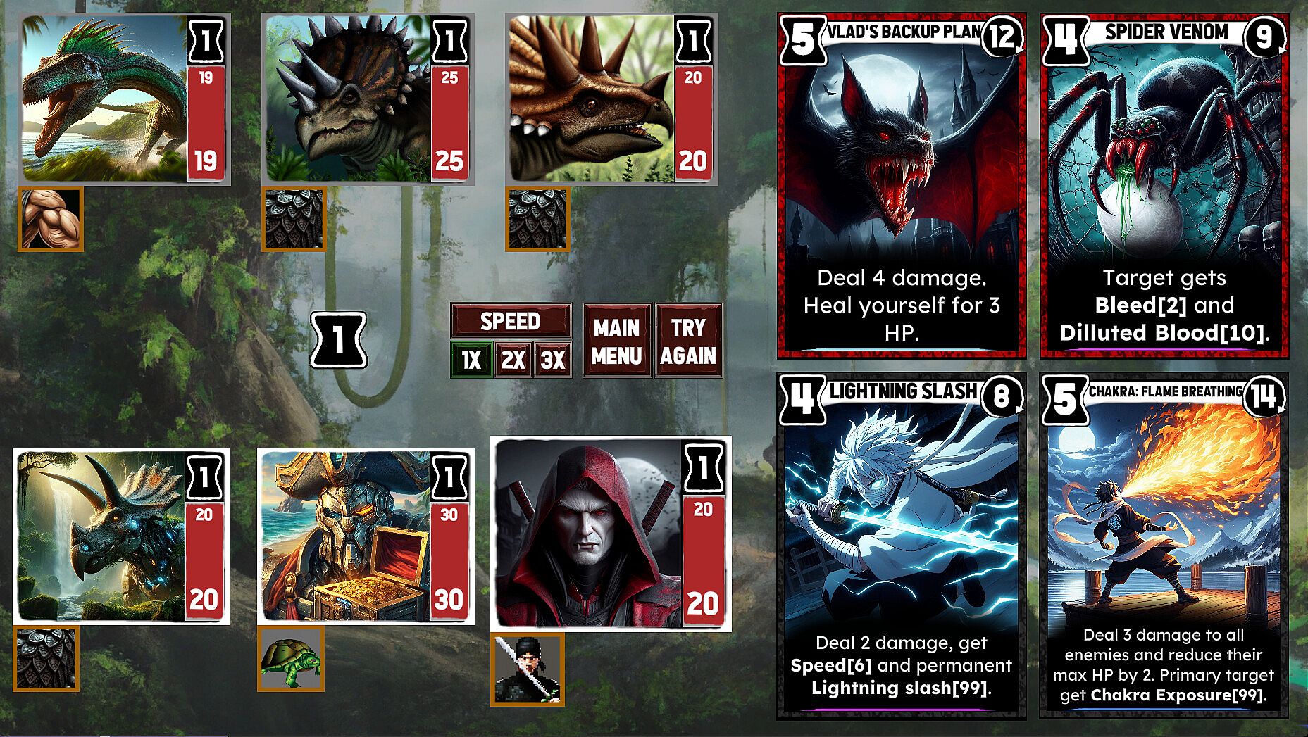 Dimension Escape is a tactical card game where every decision counts. Choose your heroes wisely—will you pick a ninja pirate or a robo dinosaur? Equip them with powerful ability cards and defeat all who stand in your way.