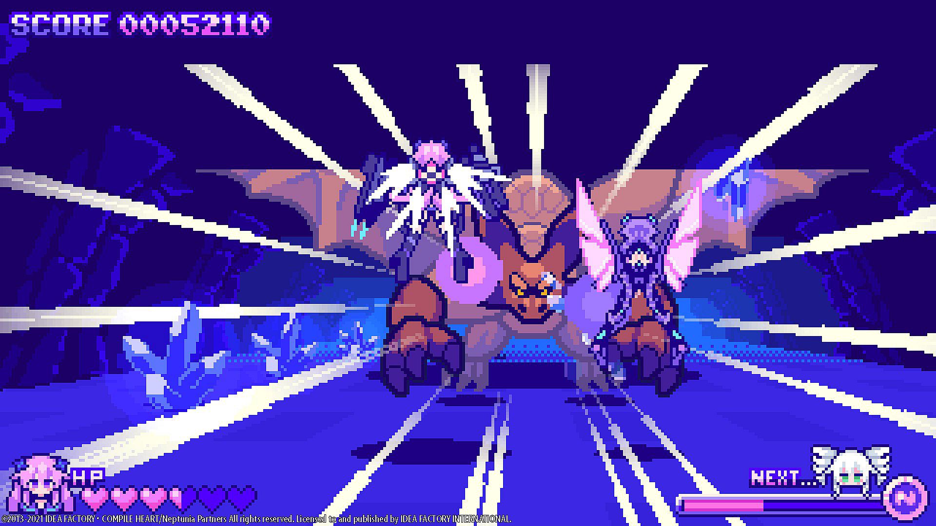 Can You Beat Your High Score? – It’s not a Neptunia game without any challenges! Choose between Normal and Hard difficulty settings and try to get the highest score. Keep a close eye on your HP bar because obstacles, flying bullets, and mischievous enemies can lunge at you at any moment. Hit a game over? Sacrifice some points to keep the game going in Normal mode!
