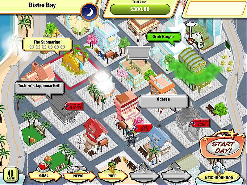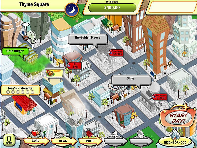 The evil Grub Burger fast food chain has bribed their way into DinerTown™ and is threatening to drive out the local diners with their cheap prices, sneaky tactics and the mysterious Ingredient X! It is up to you to take charge and help Flo and the people of DinerTown before it’s too late. Use your restaurant savvy and business smarts to stock the right ingredients, set fair menu prices and purchase new décor and advertising to make the diners successful again. Bring wholesome food and local eateries back to DinerTown to give Grub Burger the boot once and for all!