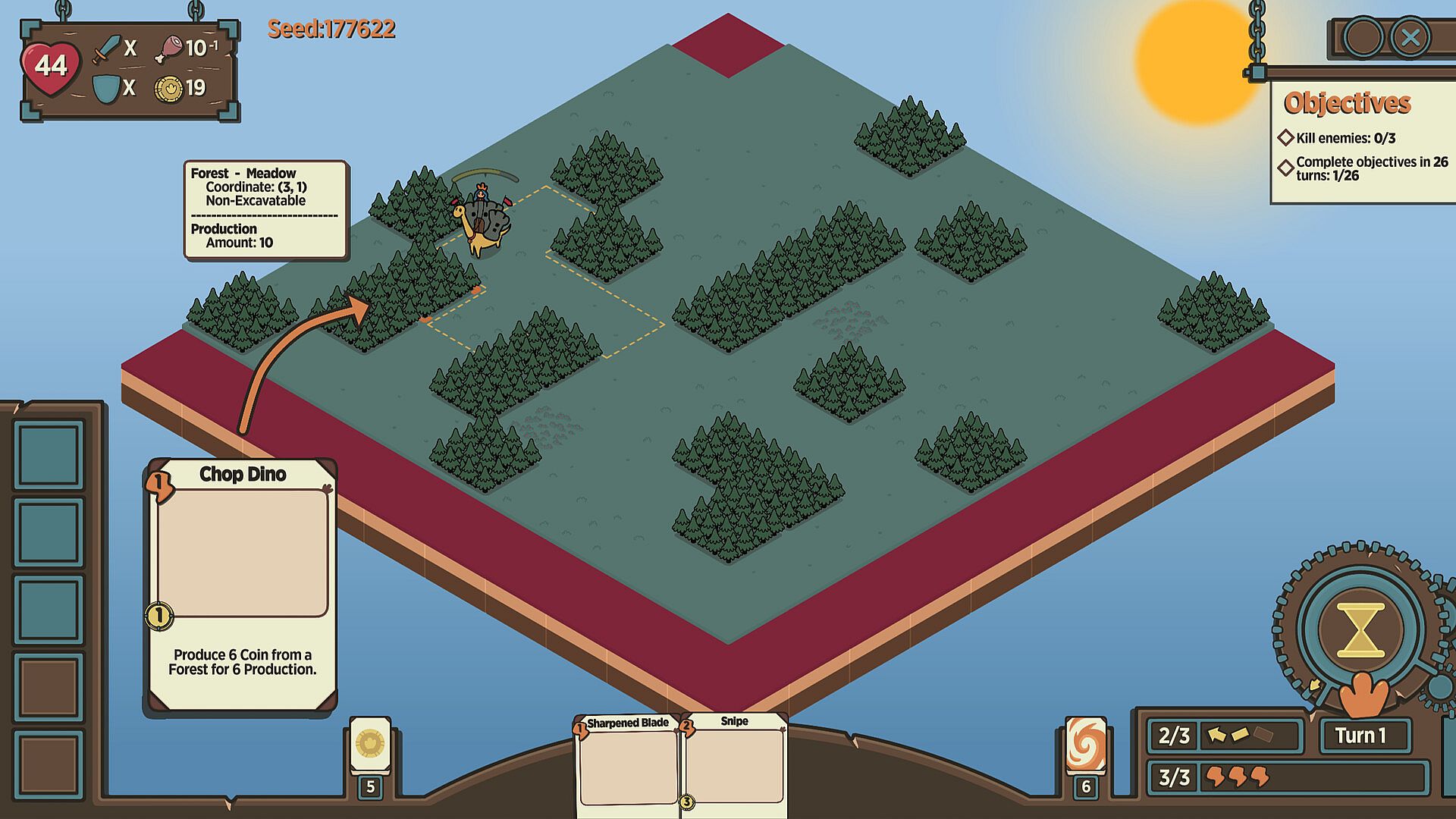 Strike, defend, harvest, or build with precision as your units move across the map. Every card interacts with terrain, range, and direction.