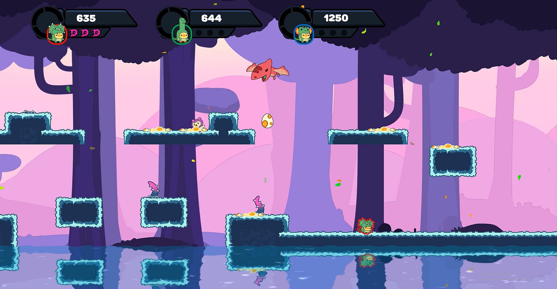Dino-Ducks Dash is a challenging chaotic 2D endless runner platformer for 1 to 4 players. The goal of the game is very simple make the leaderboard explode with your score!