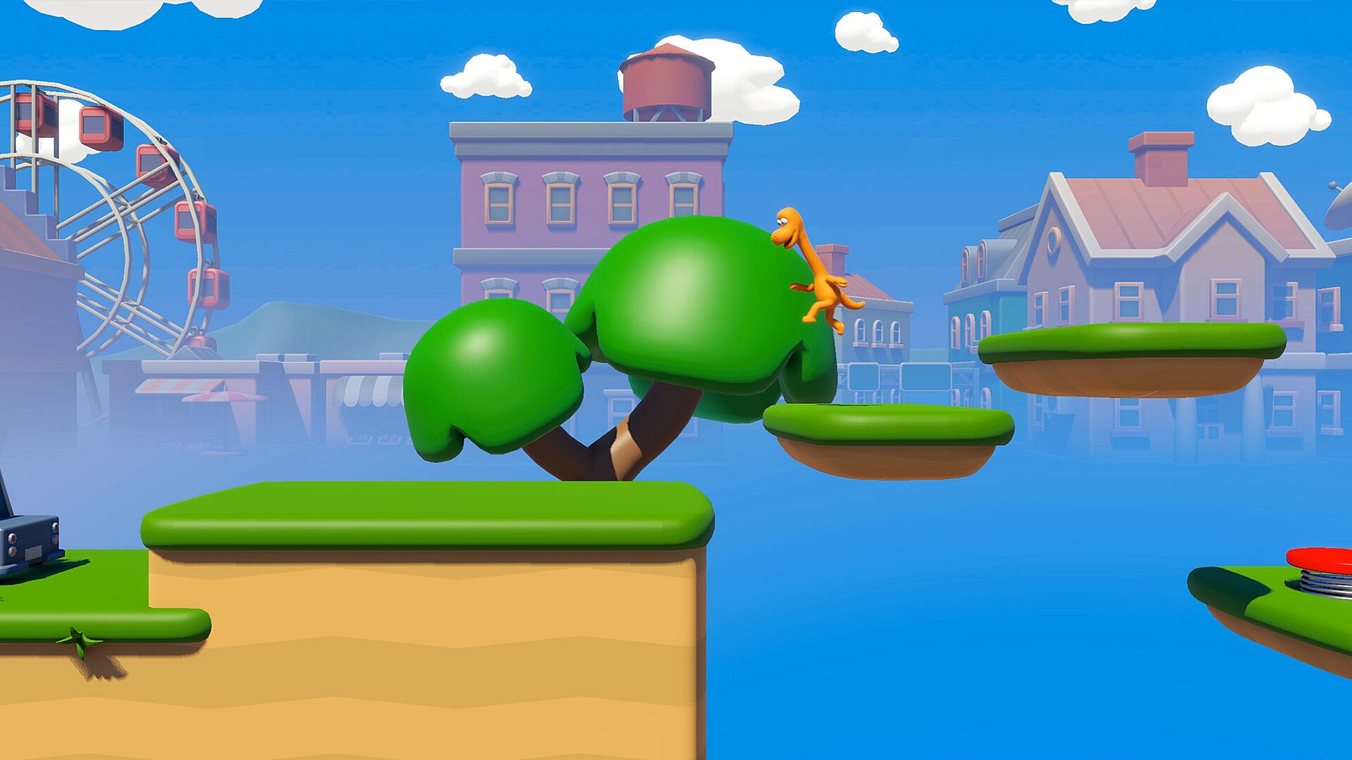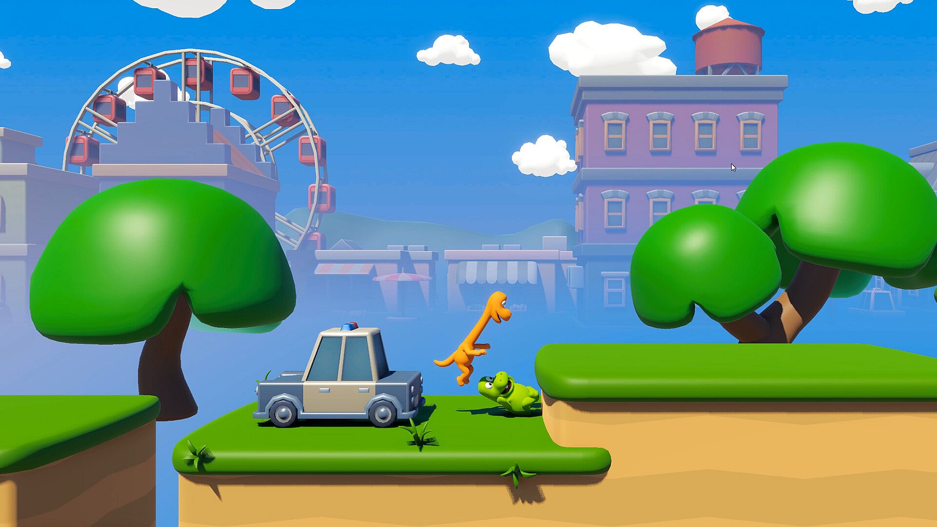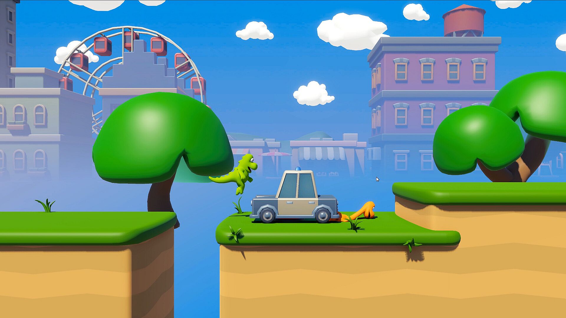 Dinos Falling is a cooperative 3D platformer for 1–3 players (local or online). Take control of clumsy dinosaurs trying to escape a modern city packed with traps, surprises, and hilarious deaths.