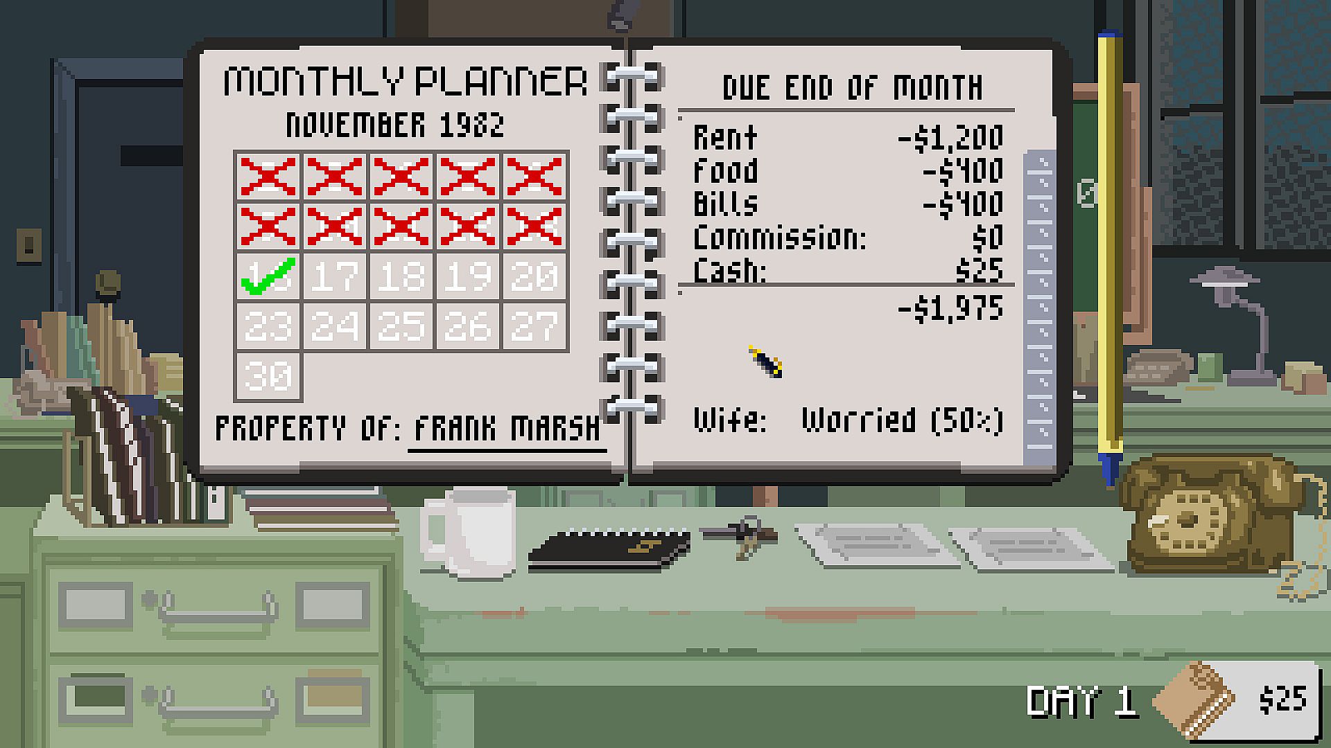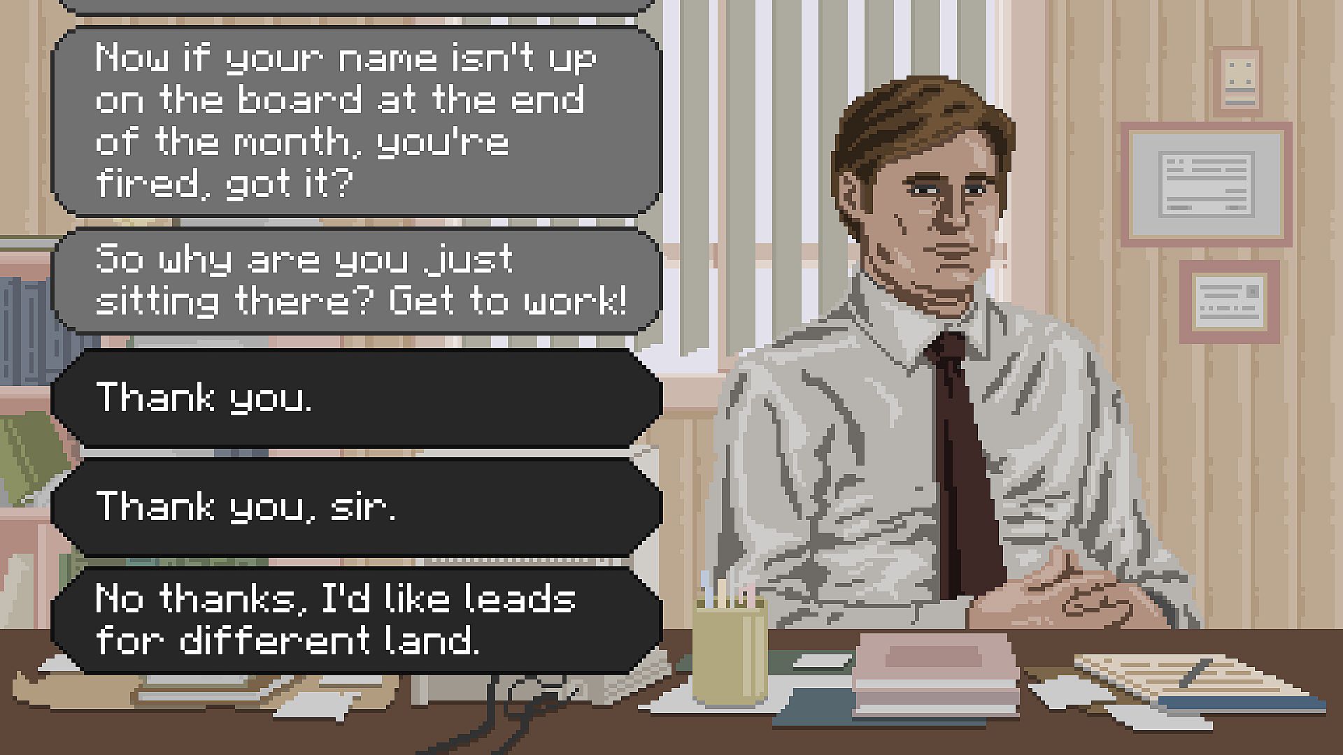 Dirty Land is a game about real estate, crime, and desperation, inspired by classic sales movies of the 80s and 90s.