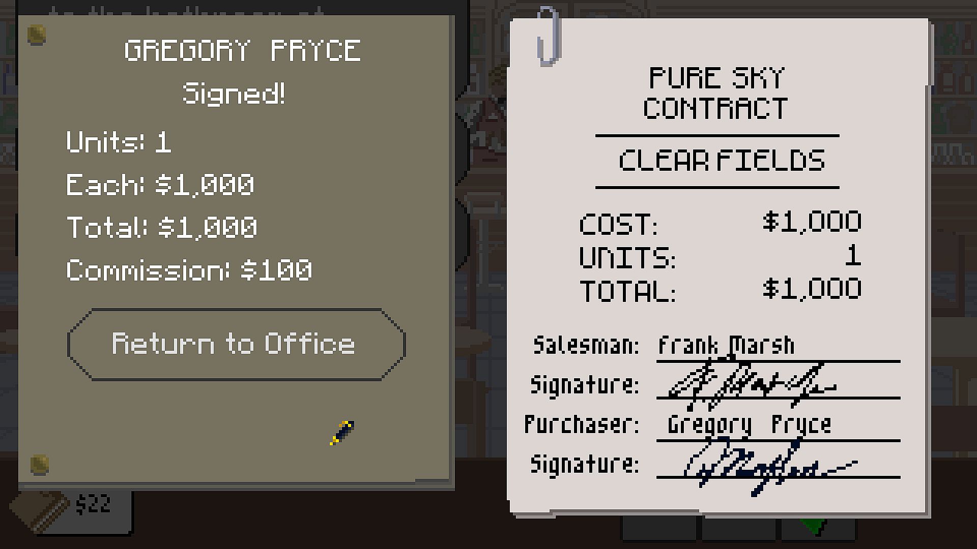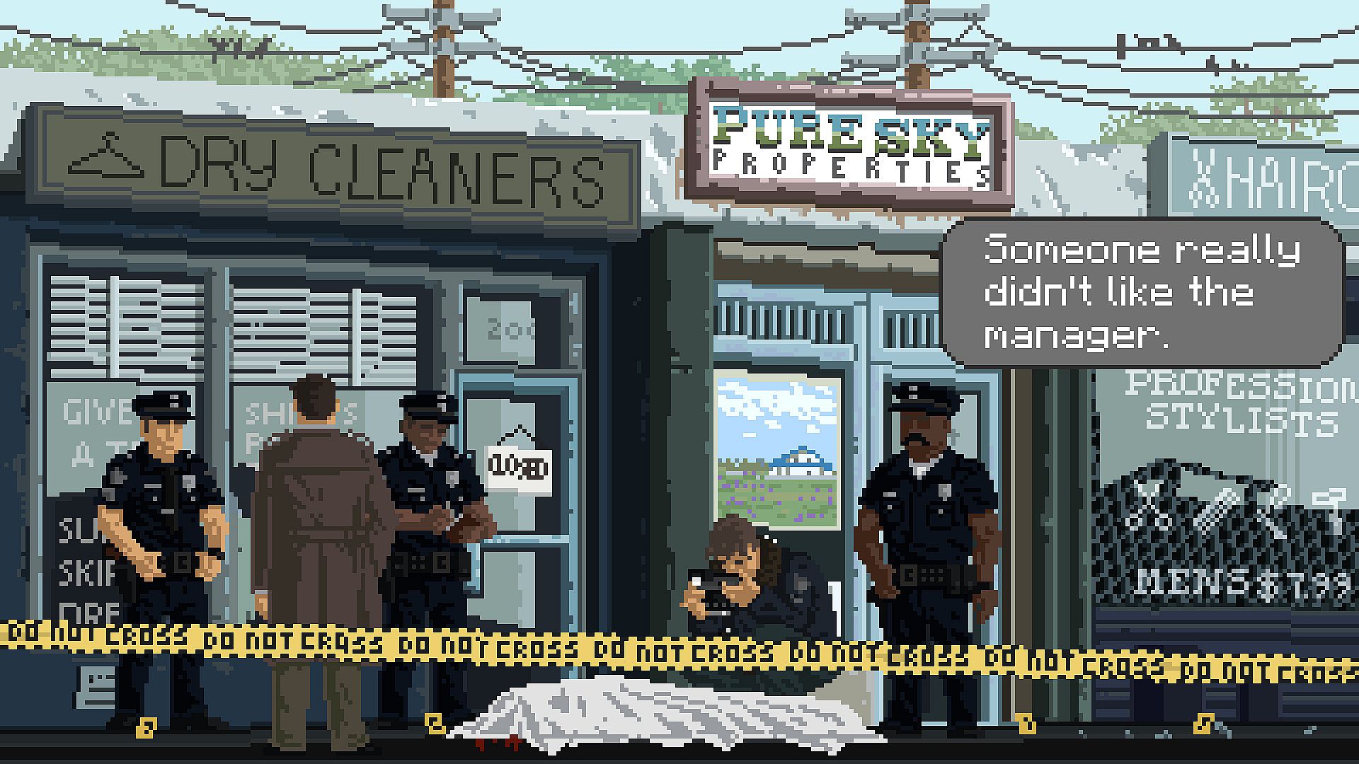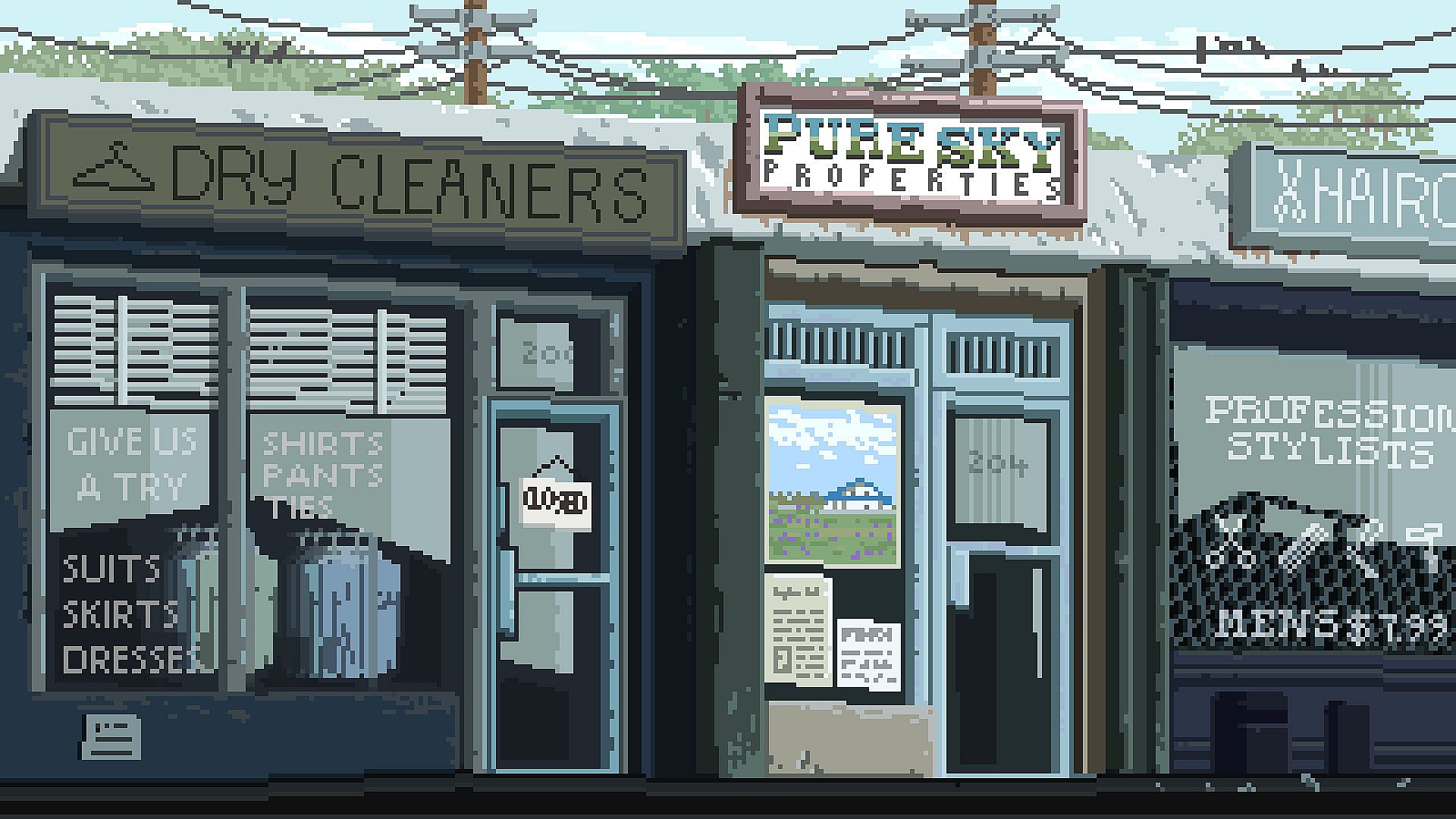 Welcome to your new job. At the start of every day, you begin out front of an unassuming, drab strip mall, where Pure Sky Properties is tucked away. Every day brings new characters to meet, new events to experience, and new stories to be told. What will it be tomorrow?