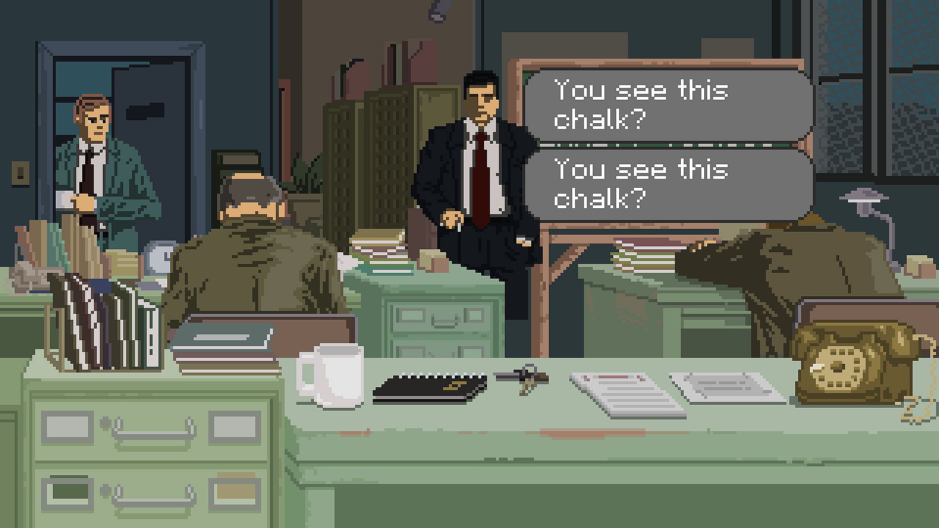 In a desperate world you'll meet desperate people. Dangerous people. People who will do anything to make rent. To not get fired. To make that promotion. To secure those juicy leads. From unsavory characters to hilarious charmers, they all have secret motives to uncover... you'll need to gather clues and piece together the truth to gain the upper hand in this double-crossing world!