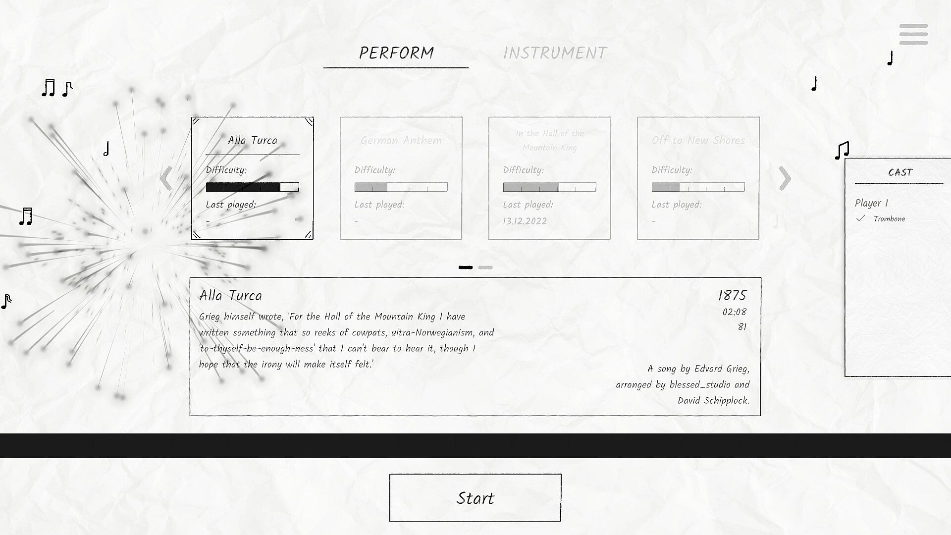 - 15 instruments to choose from - Experience the songs like never before: From classical greats like violin or trombone to exotic instruments and even cats meowing or a choir there are thousands of possible combinations.