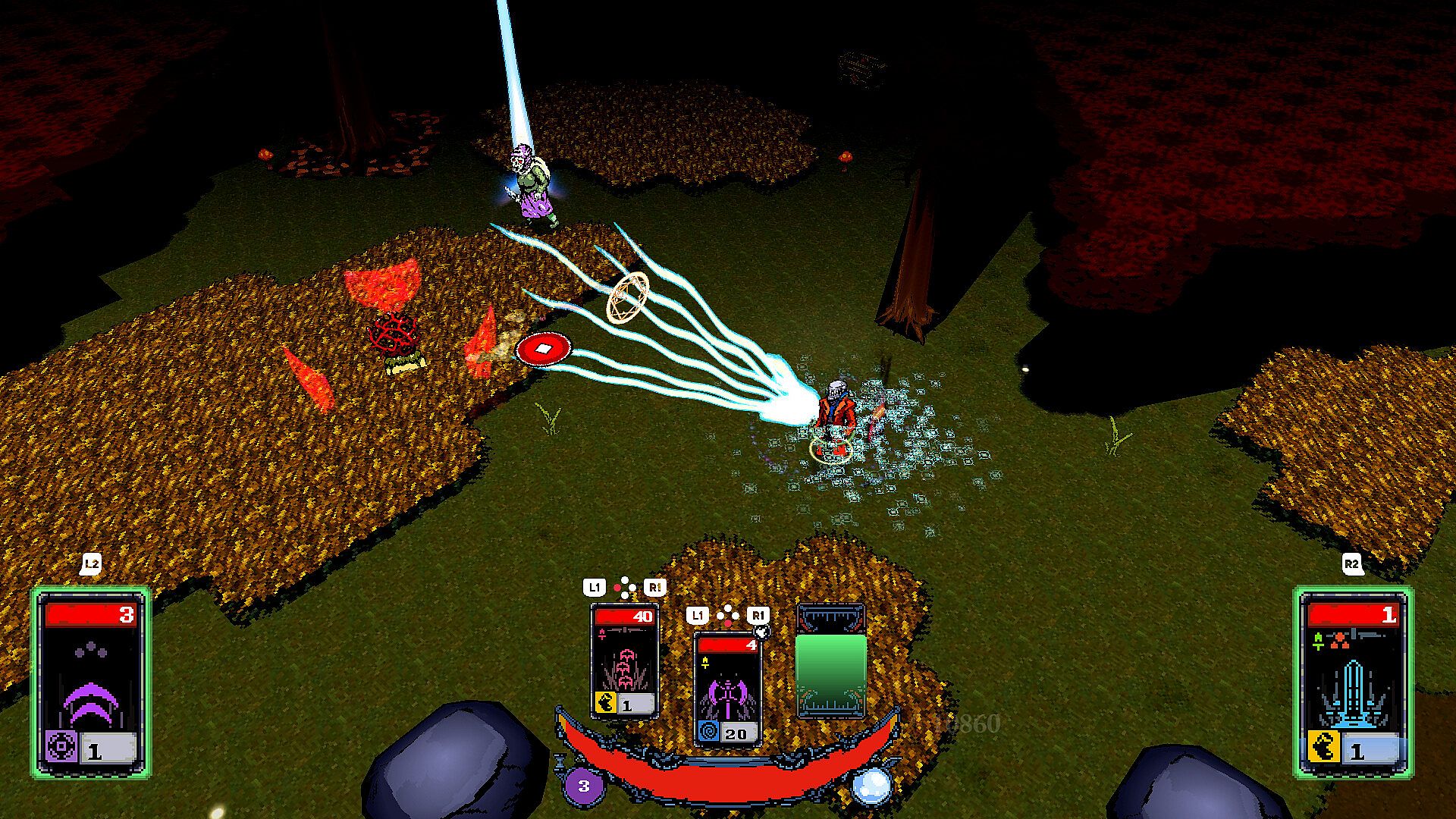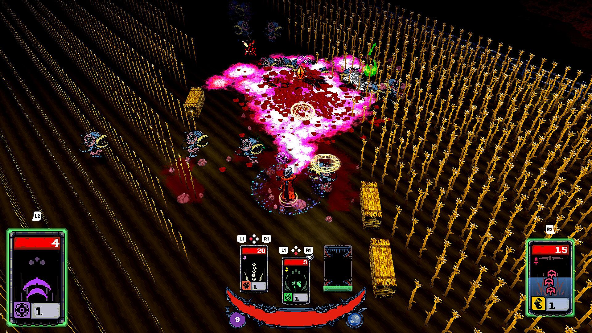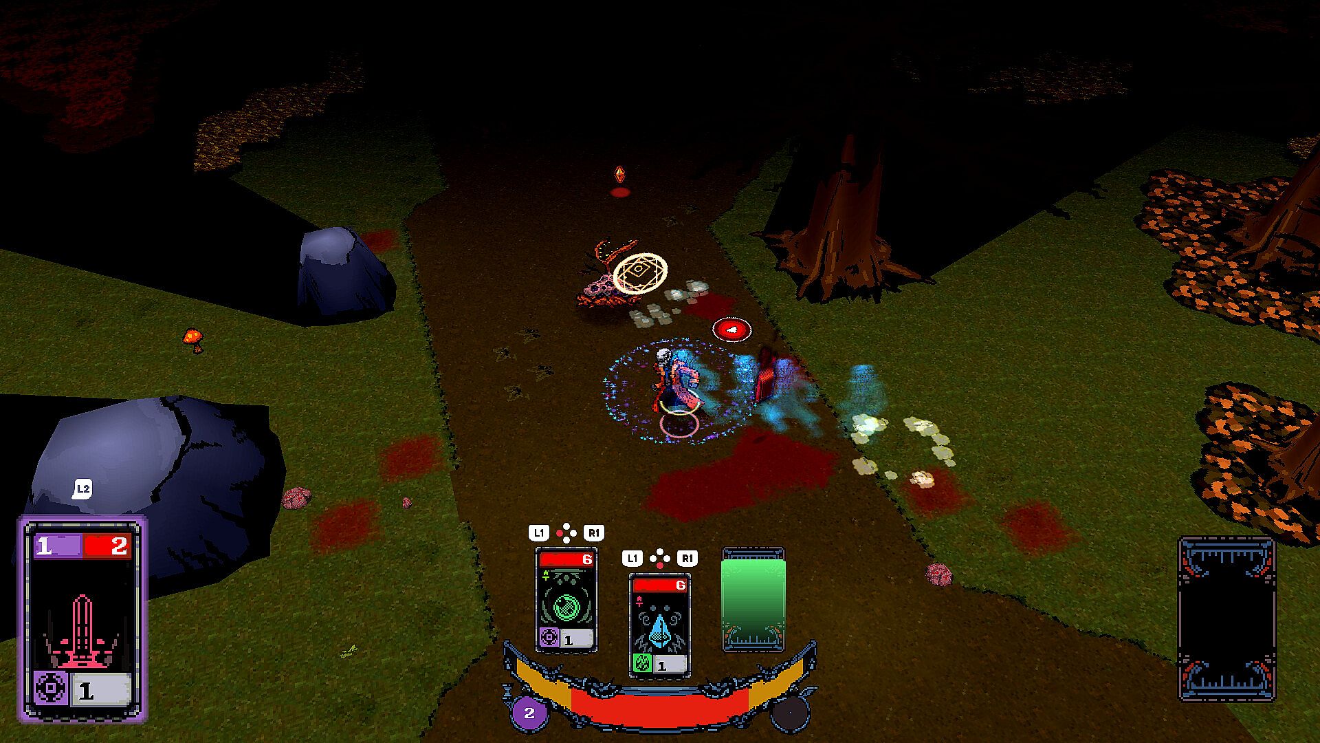 Slaughter hordes of enemies in fast paced twin-stick shooter combat! Pull spells from your deck and exploit enemy weakness to generate enough energy to keep up the pace!