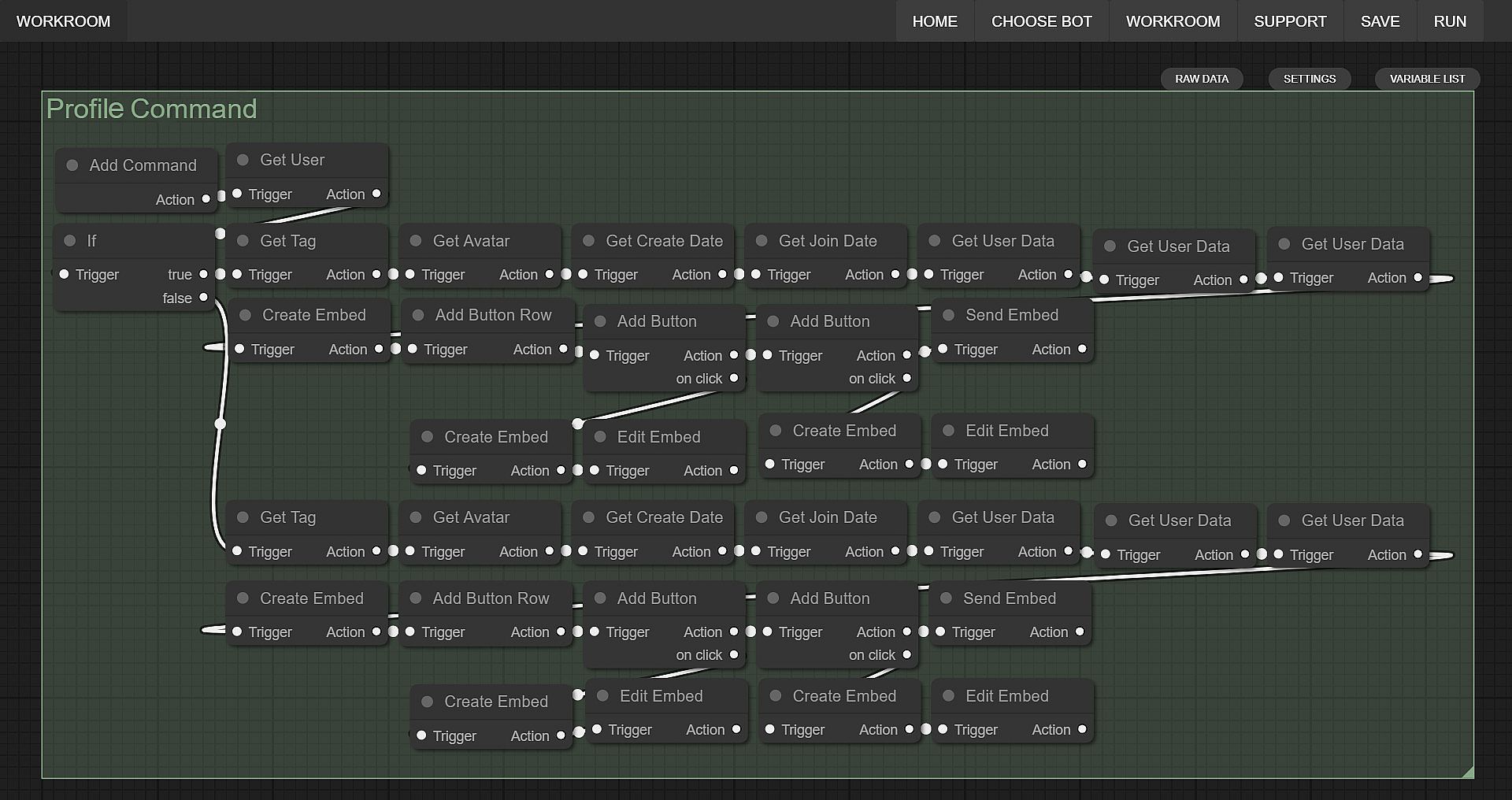 Discord bot workshop is the most advanced discord bot creator right now holding over 300 unique features in a simple infinite flowchart based node editor.