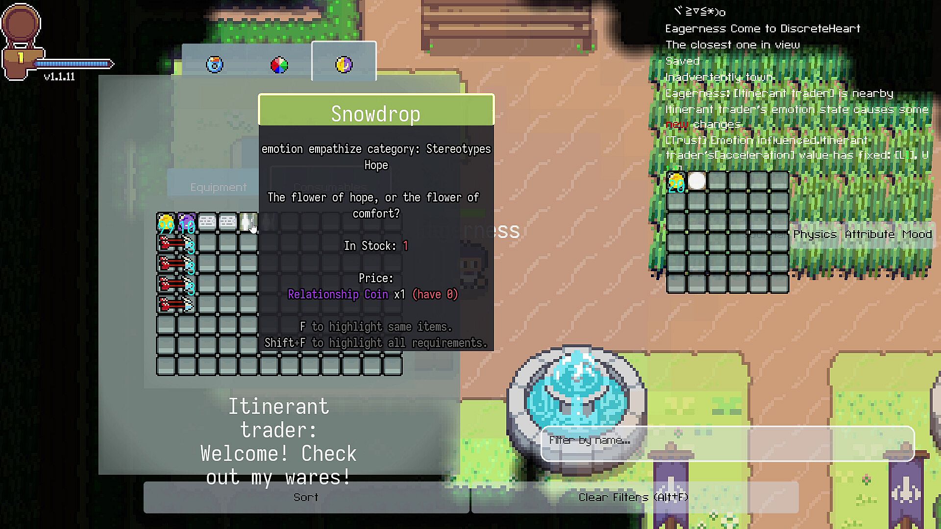 None of the above is what the player should care about, the player only needs to complete the game.The main goal of each game is to find the empathy recipe for empathy within a limited time index(a value used to simulate real time) and become an "Unintentionaler", And you can complete a game by talking to the "Guider".