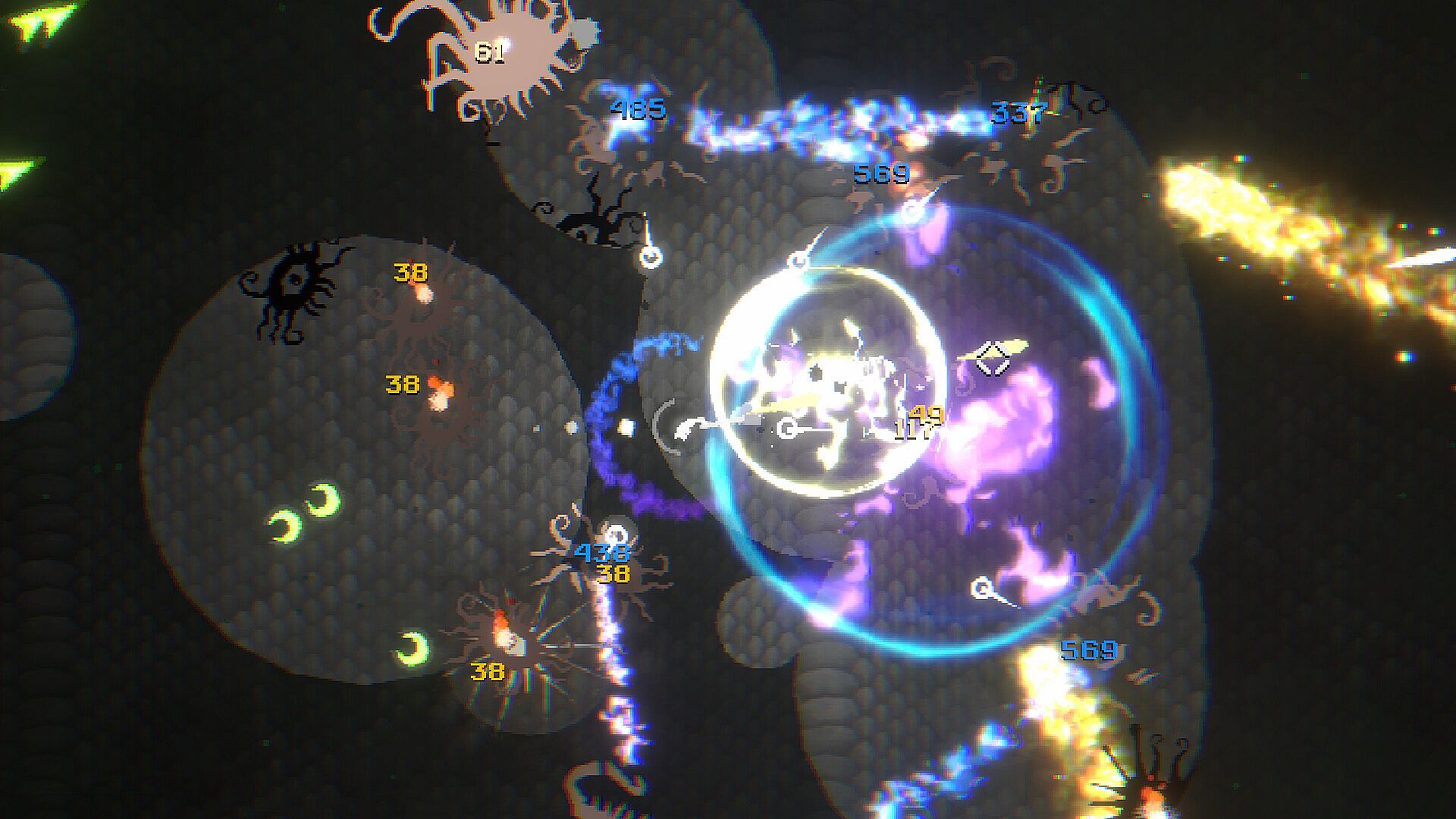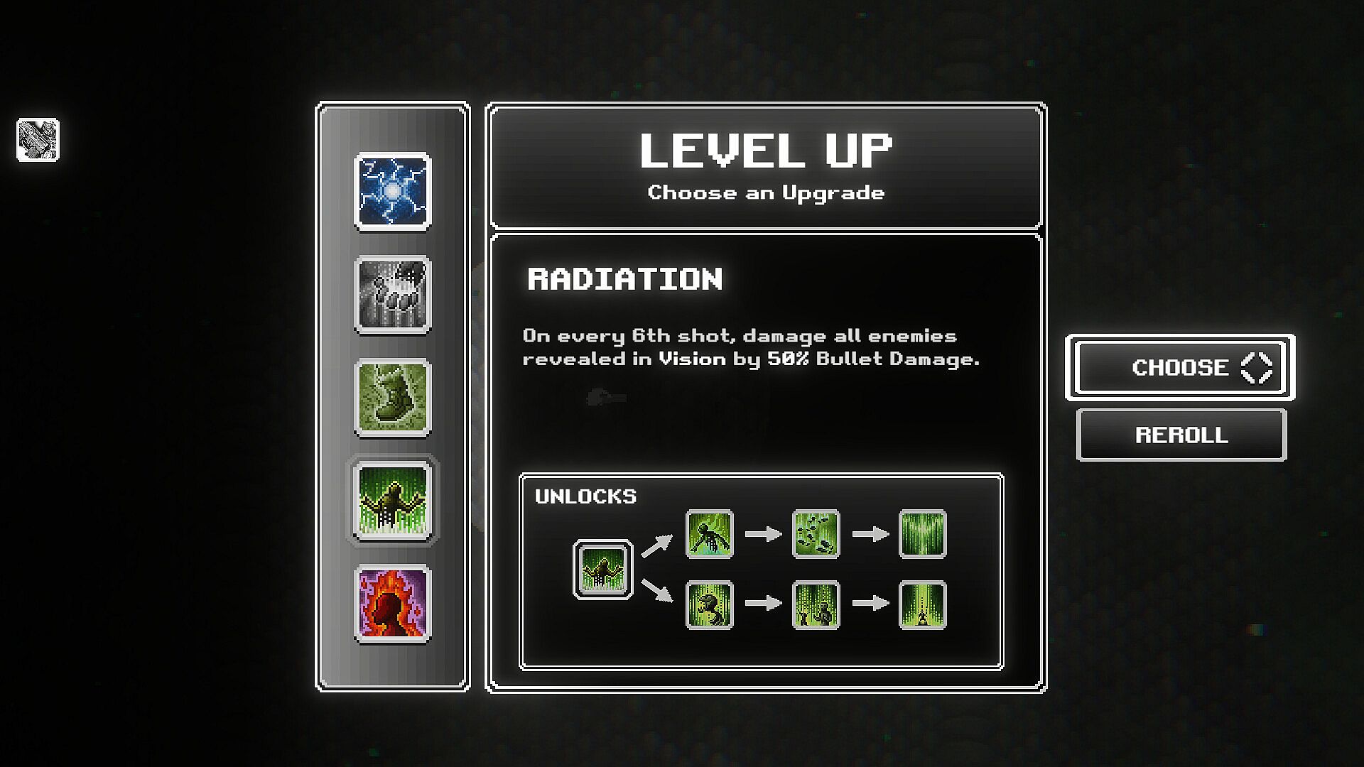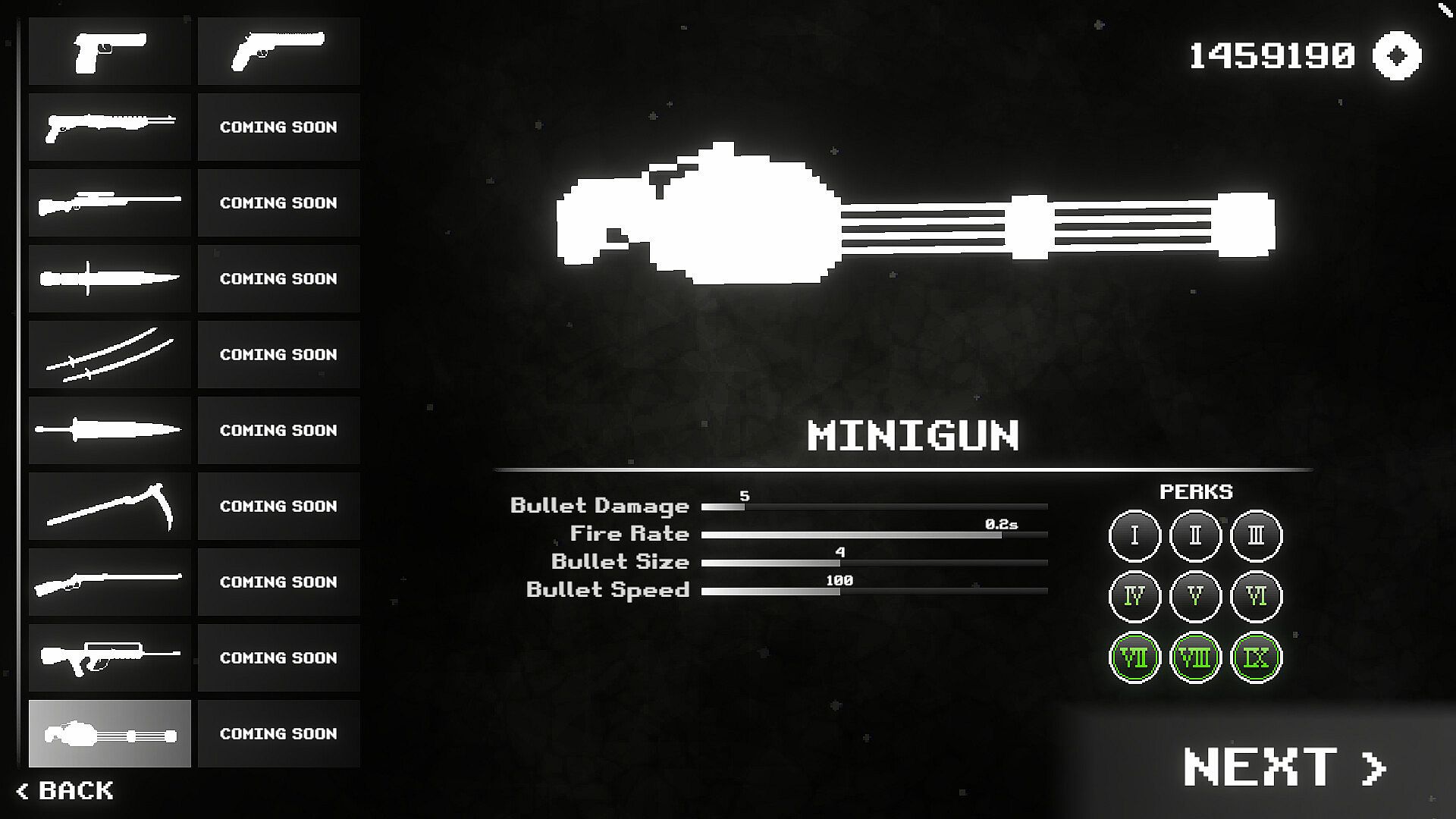 Unlock new weapons with currency earned from runs! Each weapon behaves differently and has its own unique perks allowing for a multitude of different builds.