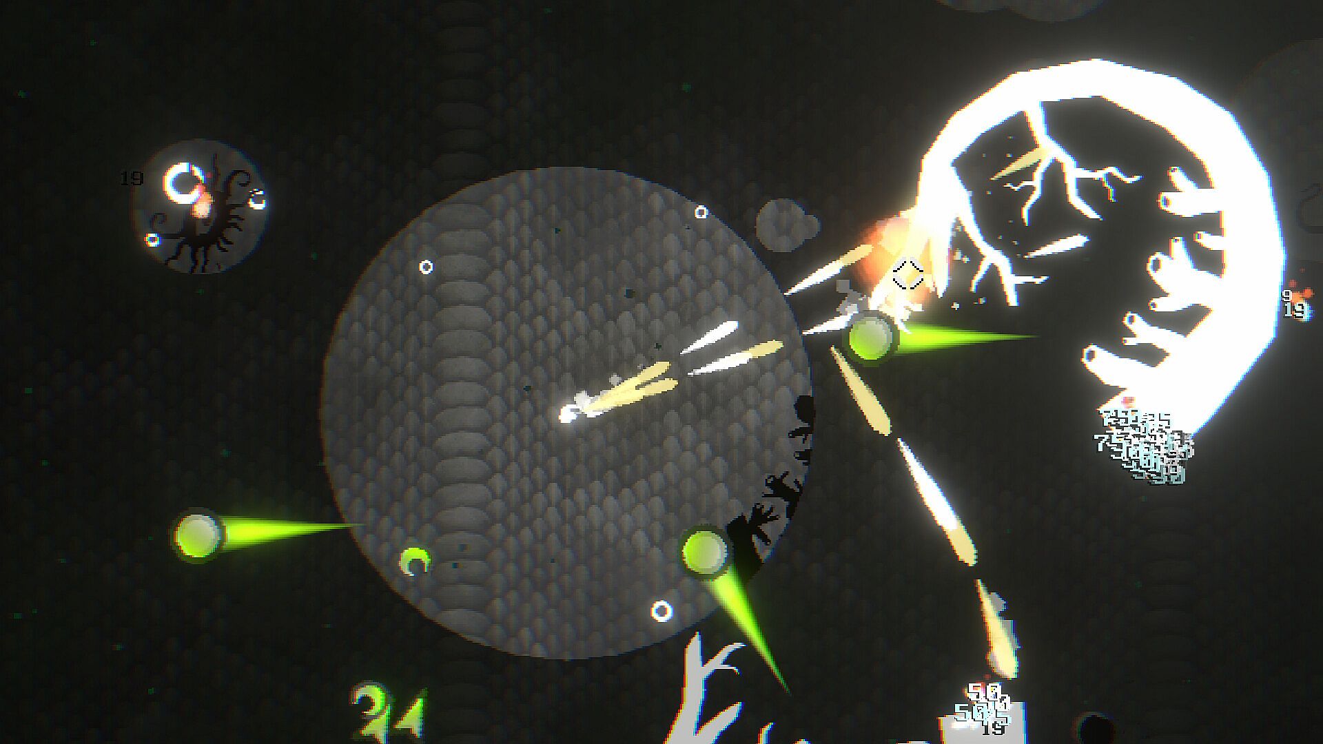 In an arena shrouded in darkness, pay close attention to your surroundings—monsters could be lurking anywhere. Swap between Circle and Cone Vision modes: one lets you see around but not far, while the other lets you see far in one direction. Fight escalating horrors, level up, and survive!