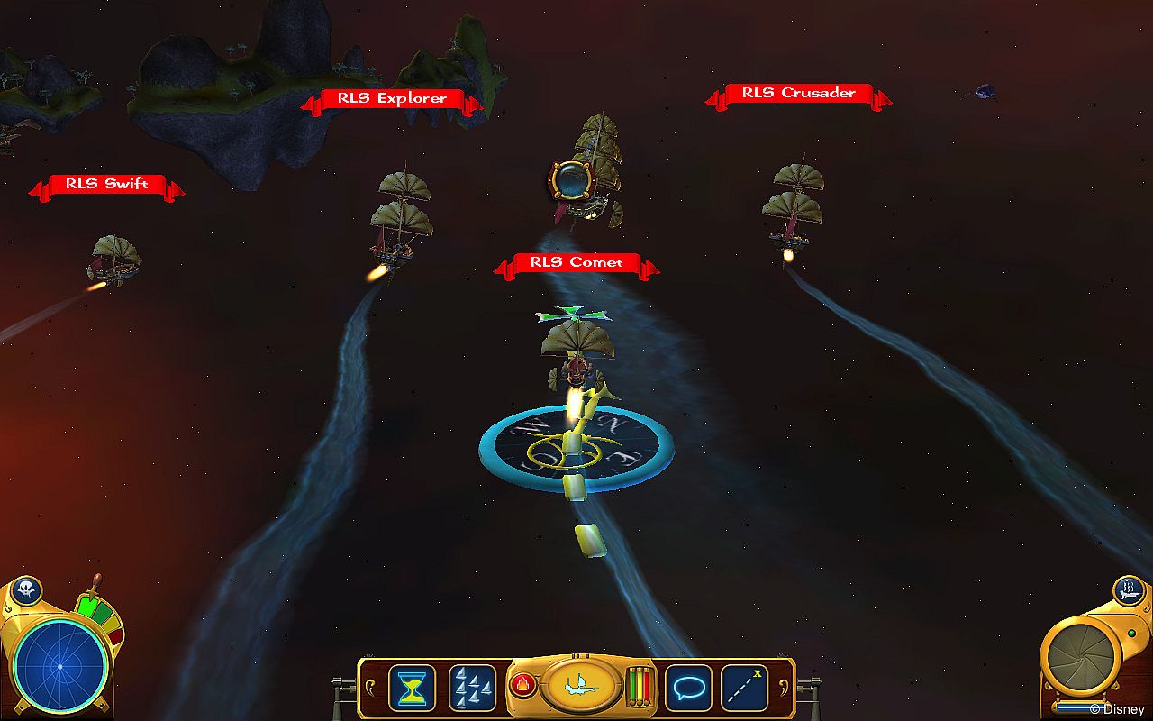 Disney's Treasure Planet: Battle at Procyon is a 3D RTS game focusing on space combat. In the main campaign's story-driven missions, you begin play as Jim Hawkins, a cadet in the Royal Navy's fight against pirates and the deadly Procyon Fleet, with an eye toward eventual promotion to fleet commander. Skirmish and multiplayer modes allow the choice of playing as all three factions.