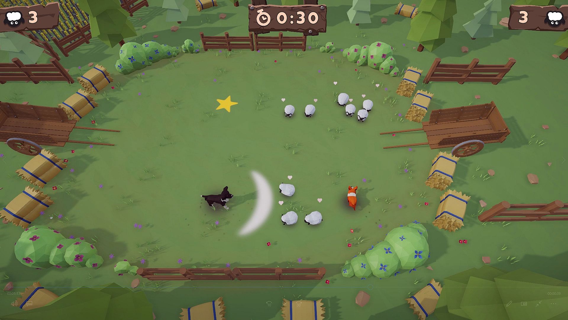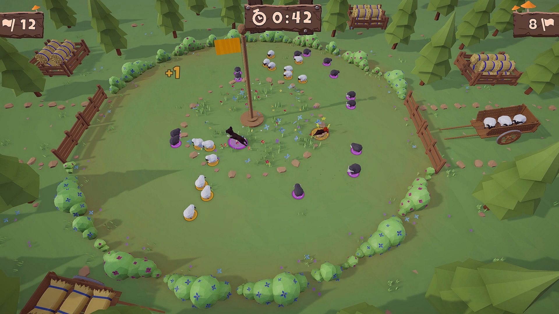 Who's a good sheepdog?! You are! Look after your flock while trying to drive your opponents sheep into danger, or compete over territory in King of the Hill. Chow down on dog biscuits to run faster, drop anvils on your opponents, and lure sheep with tasty carrots.