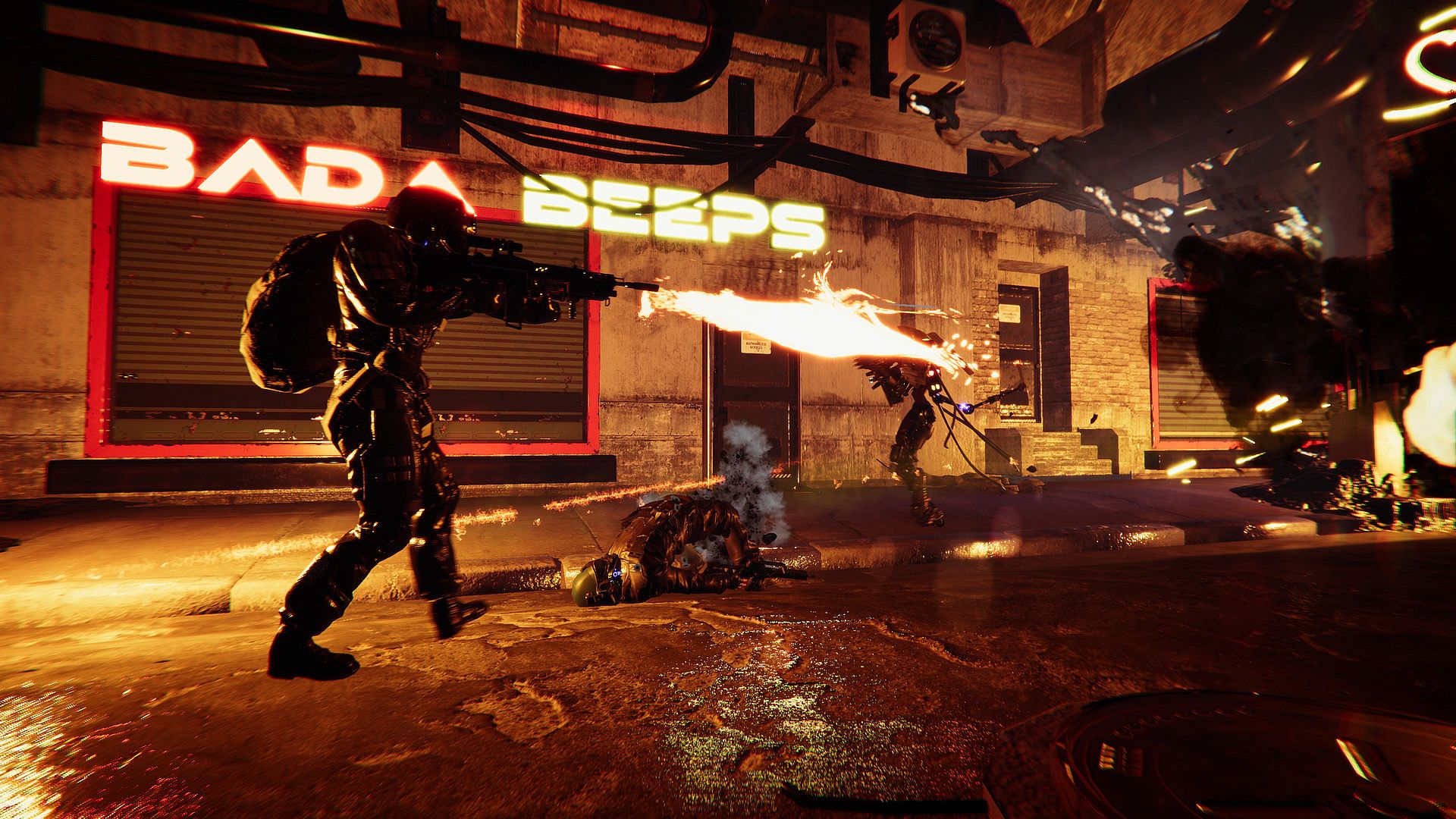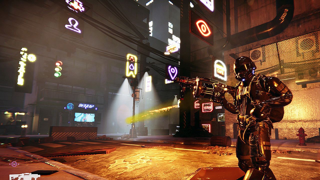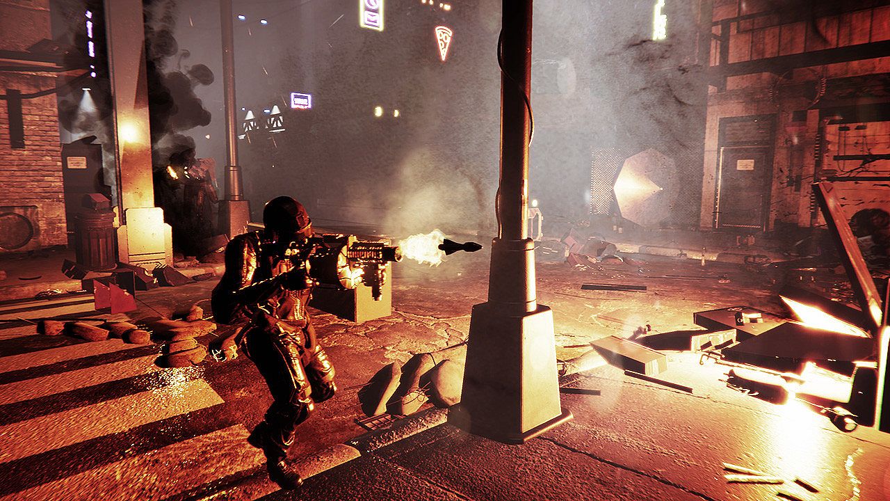 Interact with the environment to give yourself a battle advantage. Rogue ReGex blocking your path? Take aim at the sign above, and watch it rain mass destruction on your enemies. Or hit gas lines, buildings, vehicles. Explosive chaos is a vital tool in your arsenal.