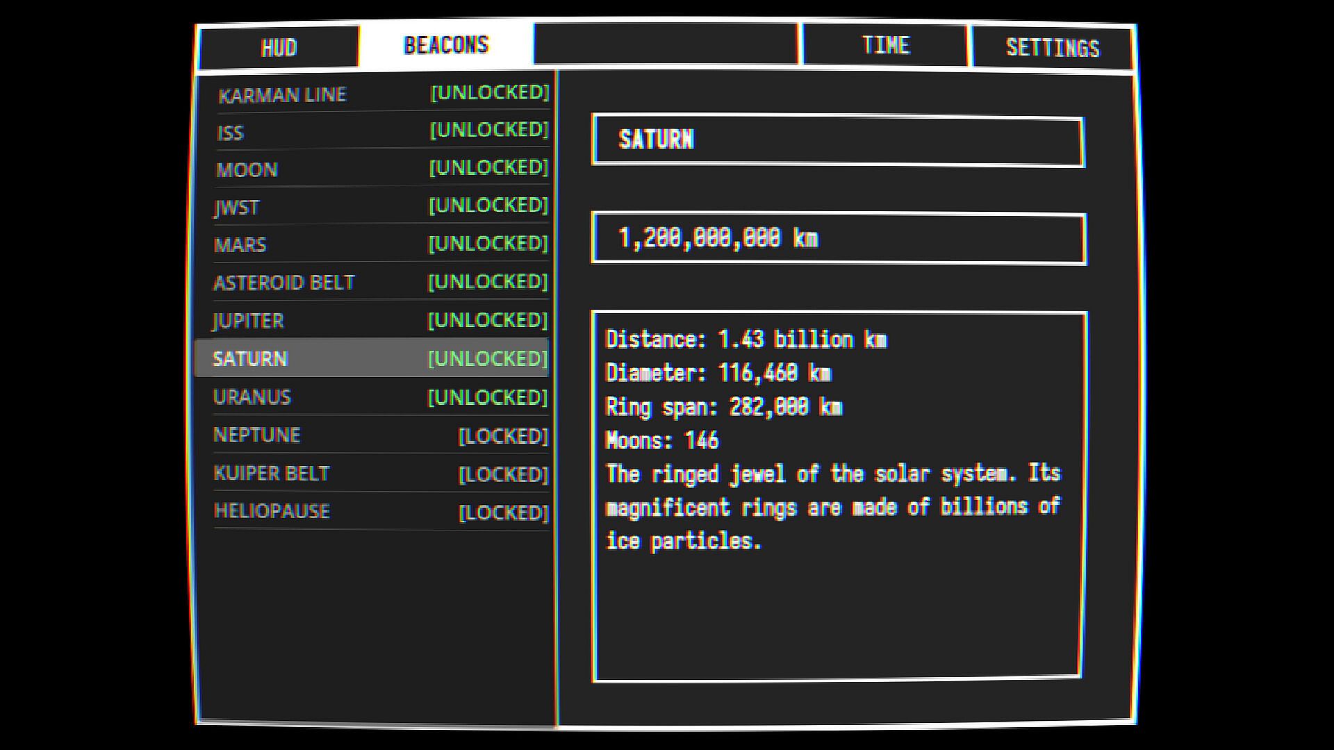 Dozens of destinations based on real astronomical data, followed by an endless stretch of uncharted deep space.
