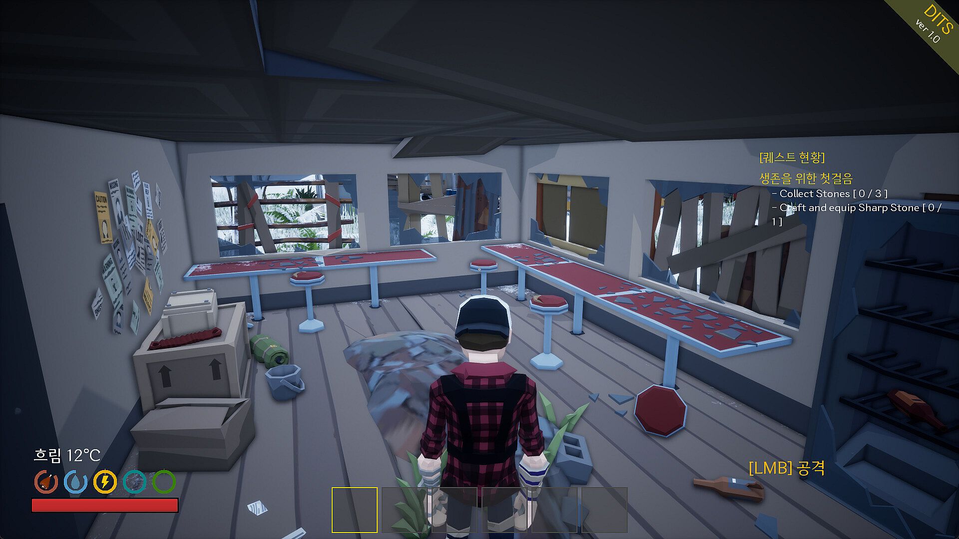 [Survival Elements]: Manage realistic survival needs such as hunger, thirst, and fatigue to keep yourself alive.