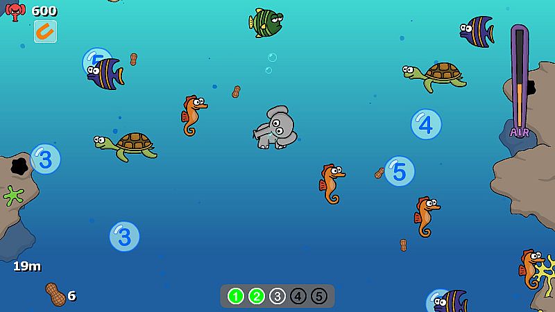 - Challenge: Collect a set number of peanuts before reaching the sea floor. Mysteries of the deep are waiting to be unlocked. Each playthrough is completely different - no two attempts are the same.