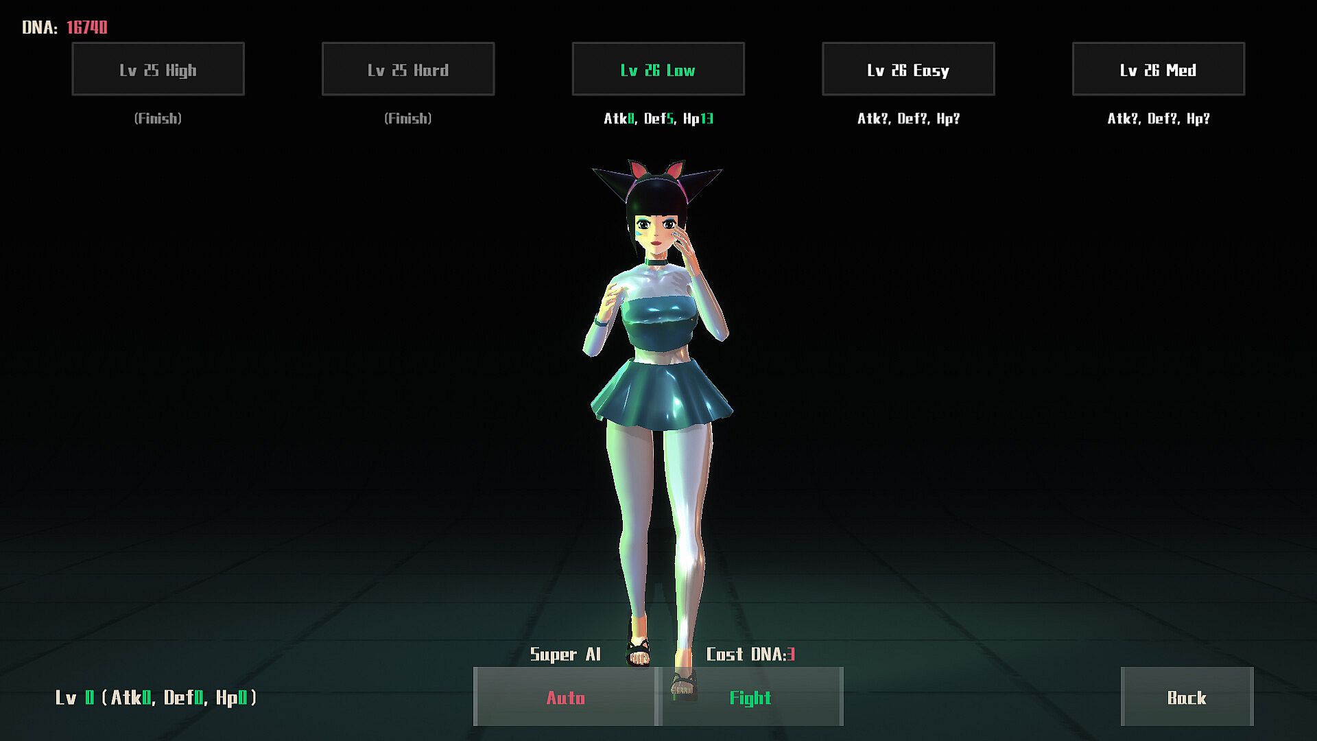 Players take on the role of a future female clone fighter, obtaining DNA through battles and gradually unlocking skills and outfits.