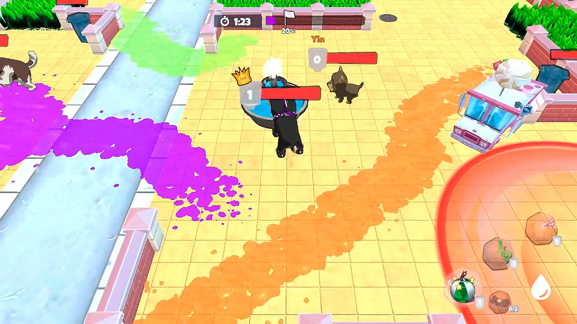 Domination: The one who pees the most wins! Charge the fire hydrants to dominate de area, but watch out for the cars!