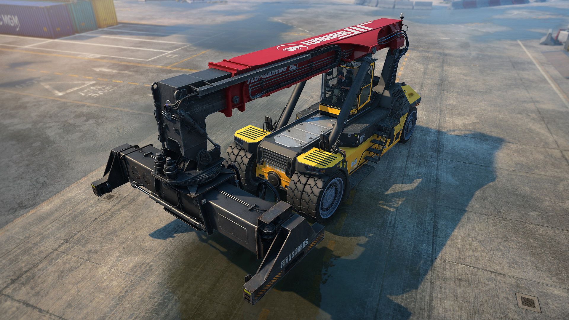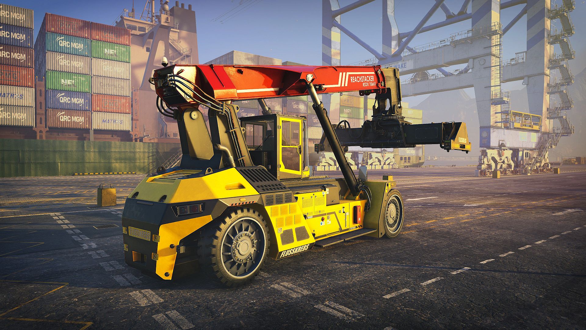 Docked is a realistic simulator where you operate heavy machinery, restore and develop the port's infrastructure, and manage day-to-day operations to help your port expand and thrive. Pre-order Docked to unlock the Premium Reach Stacker vehicle, a sleek, modern upgrade you can switch to at any time. Enjoy a distinctive three-tone body color design, a boosted engine, quicker acceleration and braking, and a boom lift that's 15% faster.