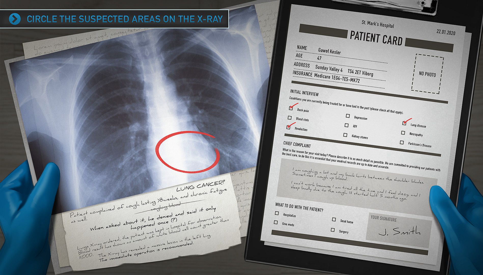 Sometimes pills just aren’t enough and the operation a must. Be sensitive when announcing the worst news to people – they have real feelings. After the talk, take the patient to the operating theatre, put on the mask, the gloves, grab your scalpel… and perform your duty! The patient’s family may be panicking, but you have to get a grip on yourself.