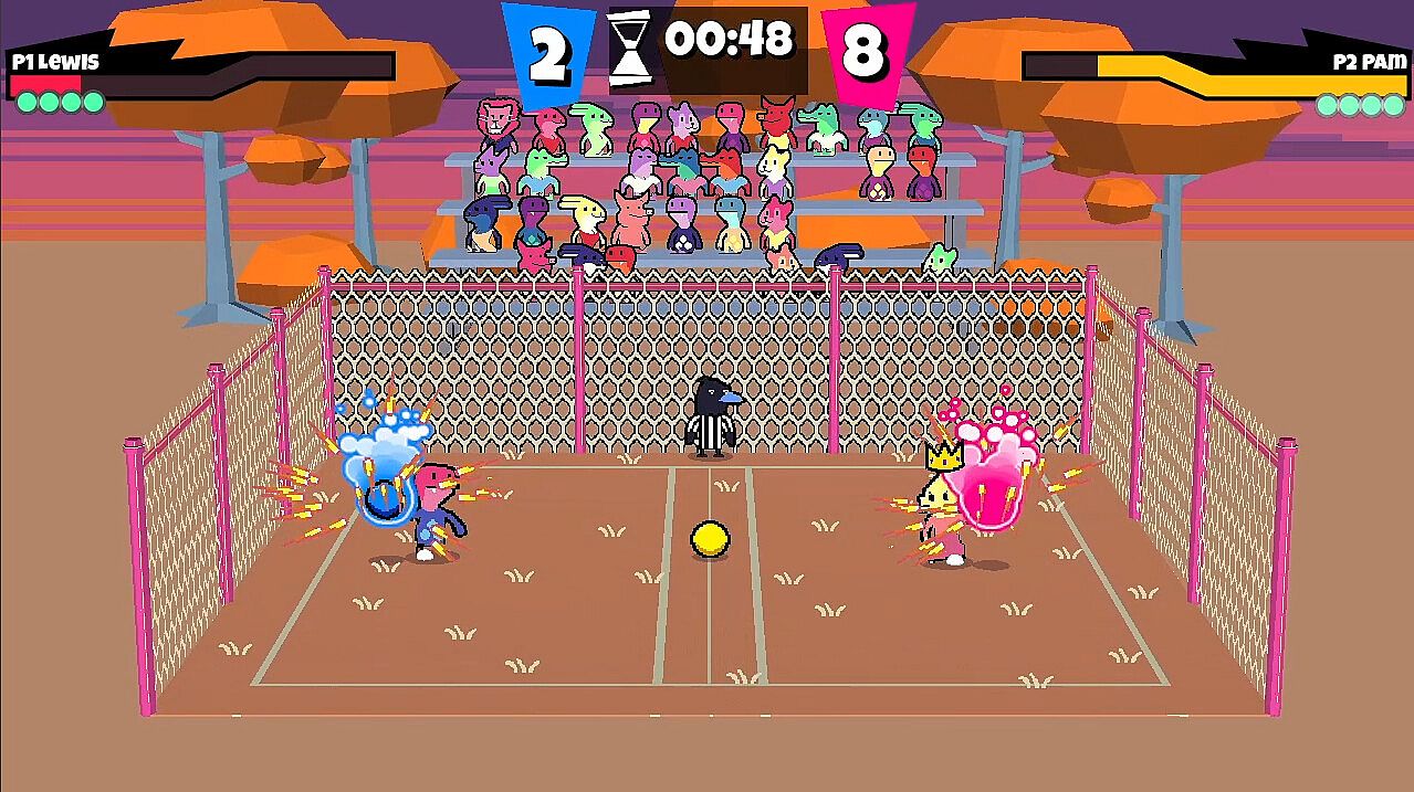- Low Gravity - Both players and balls falls slower, so jumping requires more commitment.