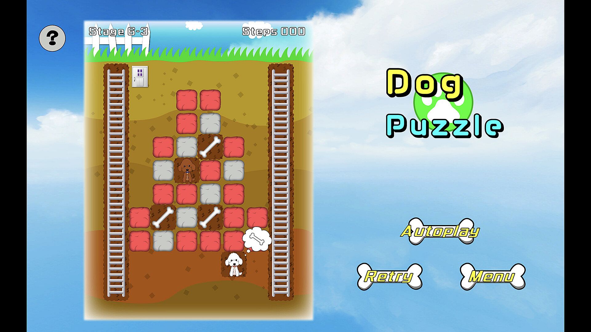Help the two dogs dig out the bones they hid in the dirt..."Dog Puzzle" is a challenging puzzle game that requires you to think carefully without worrying about time limits.