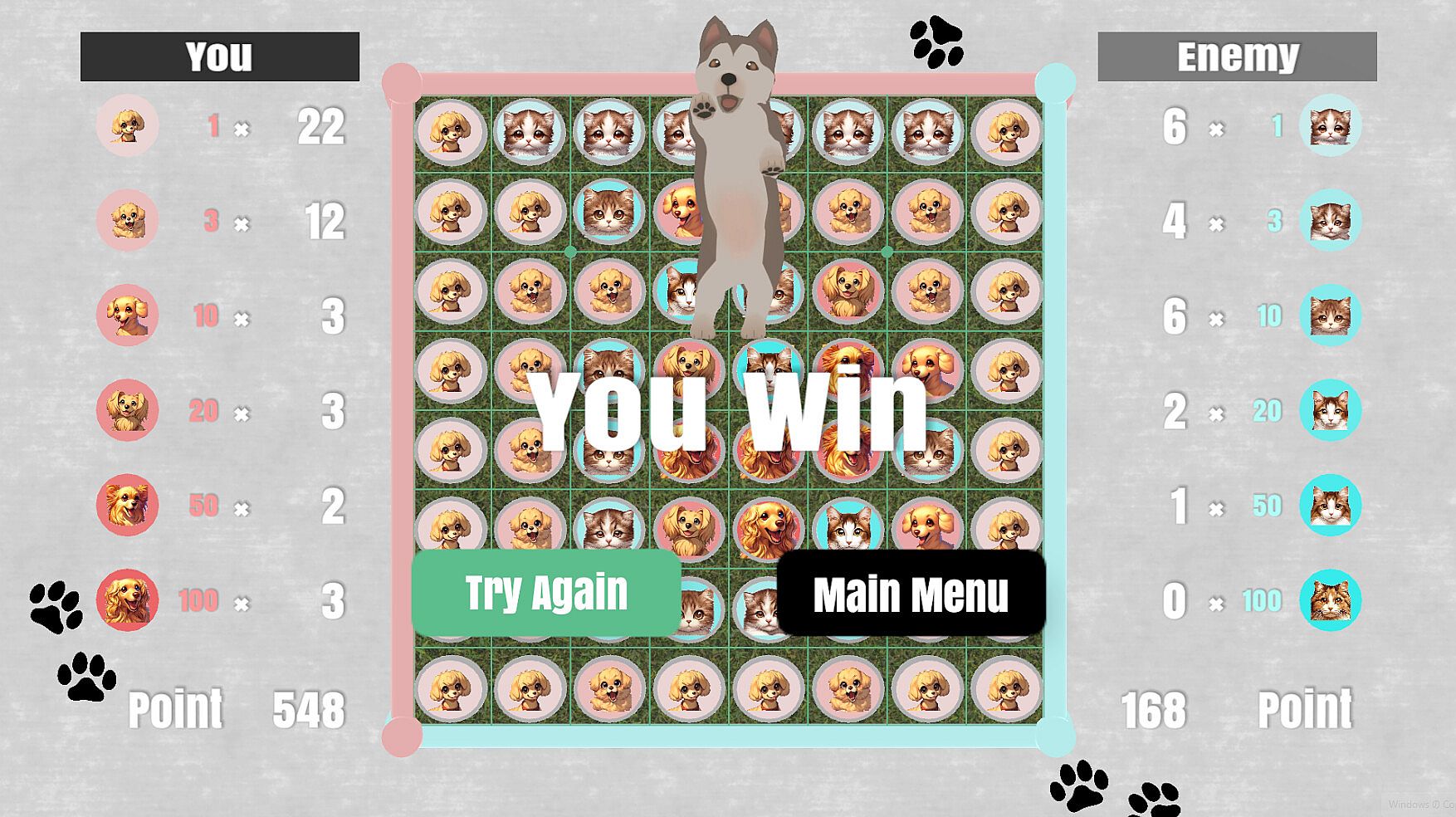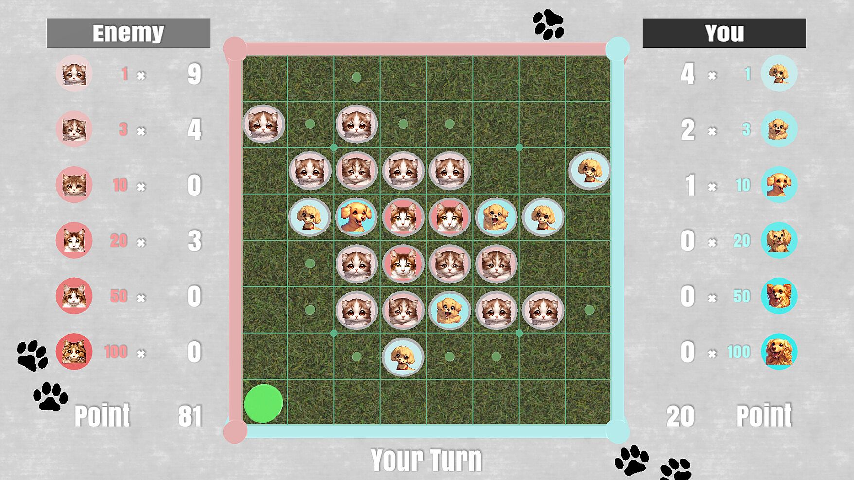 "Dog vs Cat Othello" is an adorable Othello game where you battle with your favorite dog or cat characters.New Element: Evolve Your Own Pieces