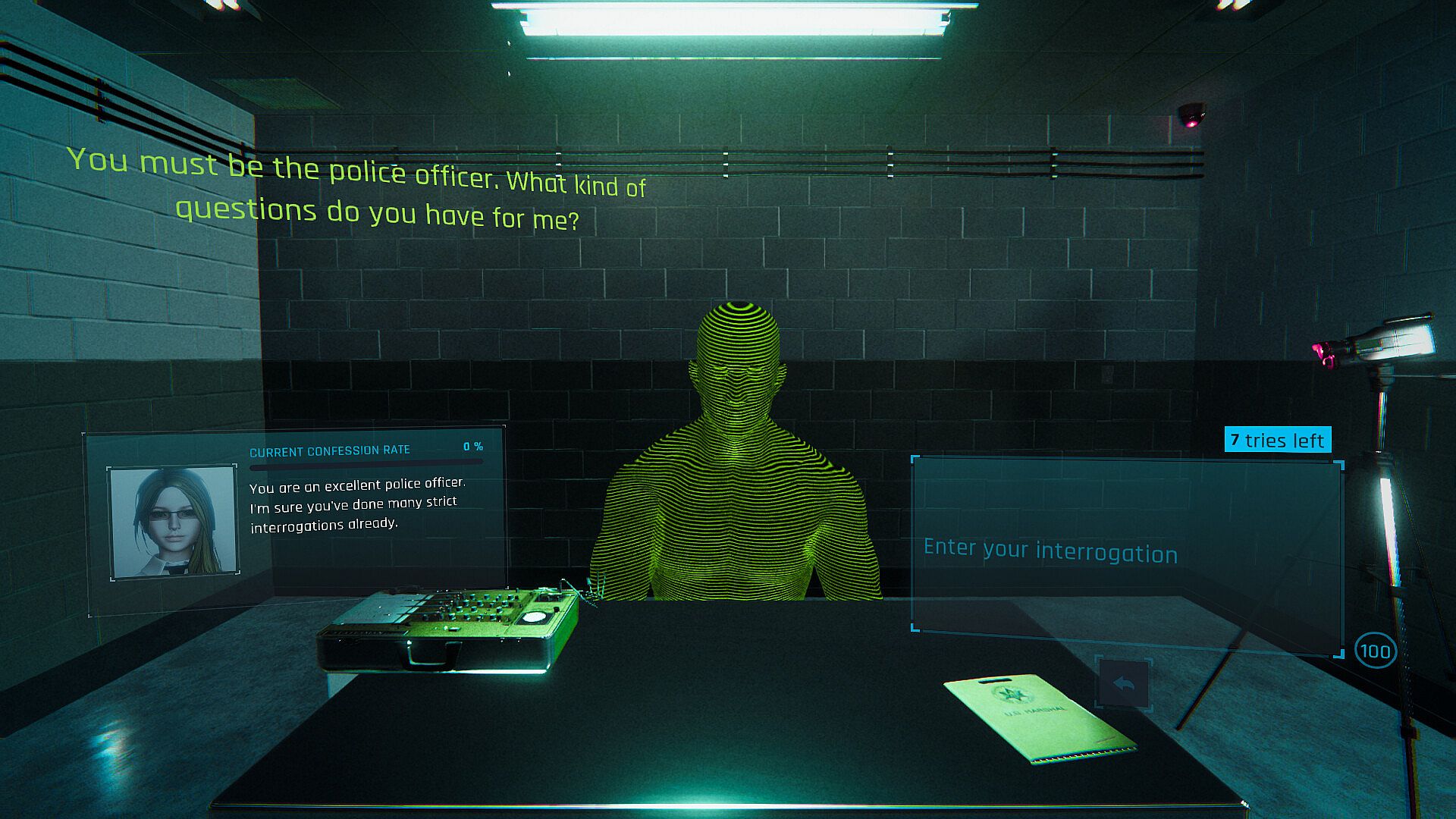 You are tasked with interrogating the suspect [AI] of a murder crime as an [excellent police officer]. How you choose to interrogate the suspect is up to you. How the AI reacts is rendered in real-time through ChatGPT.In addition, an emotional circuit is programmed into the AI, raising its heartbeat as the interrogation progresses, making it want to confess as its uncomfortability rises.