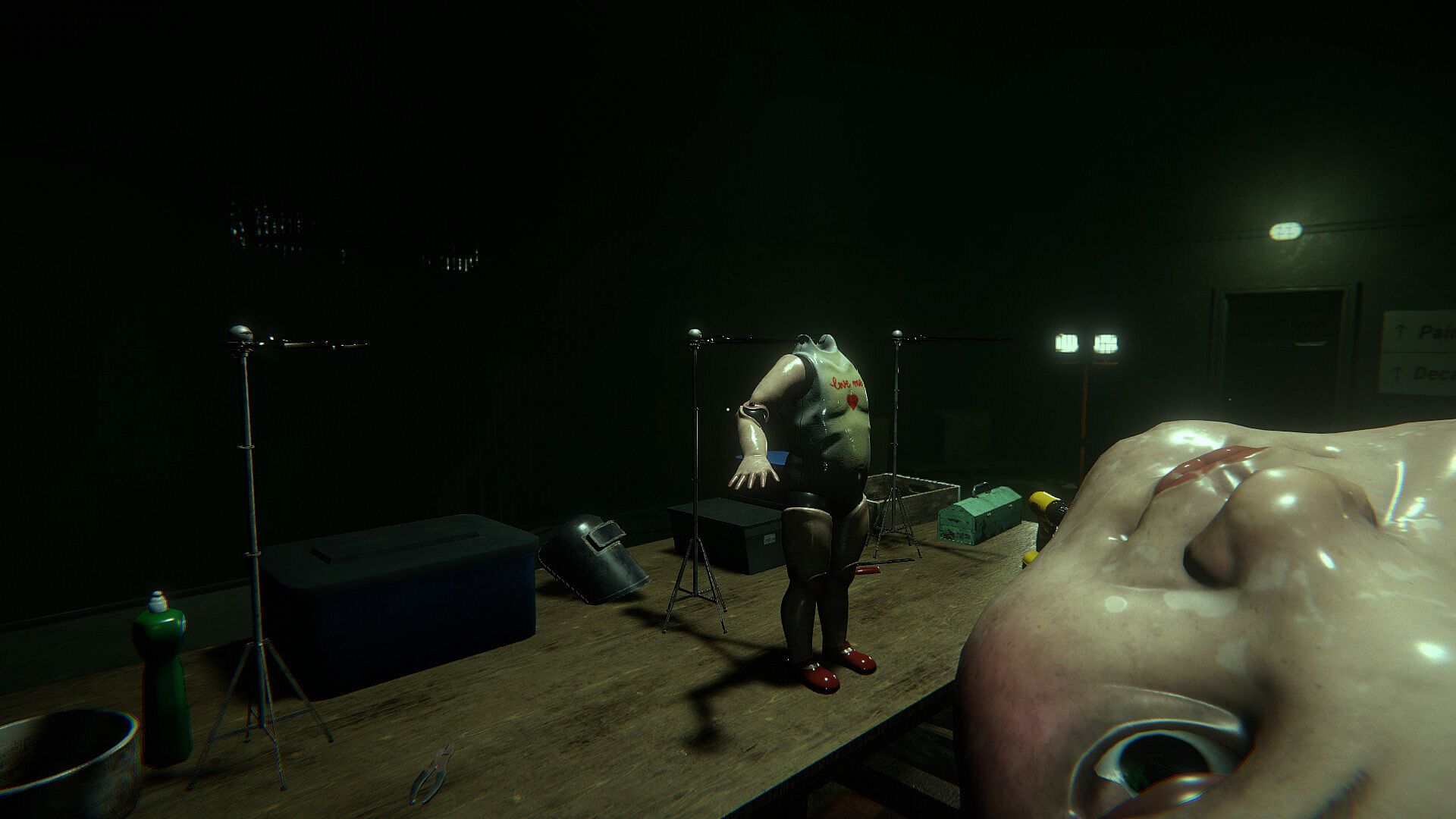 This is a first-person psychological horror game centered on repetition, precision, and survival through routine. Each shift is structured around careful doll assembly and inspection inside a protected workspace, contrasted with risky exploration beyond it.