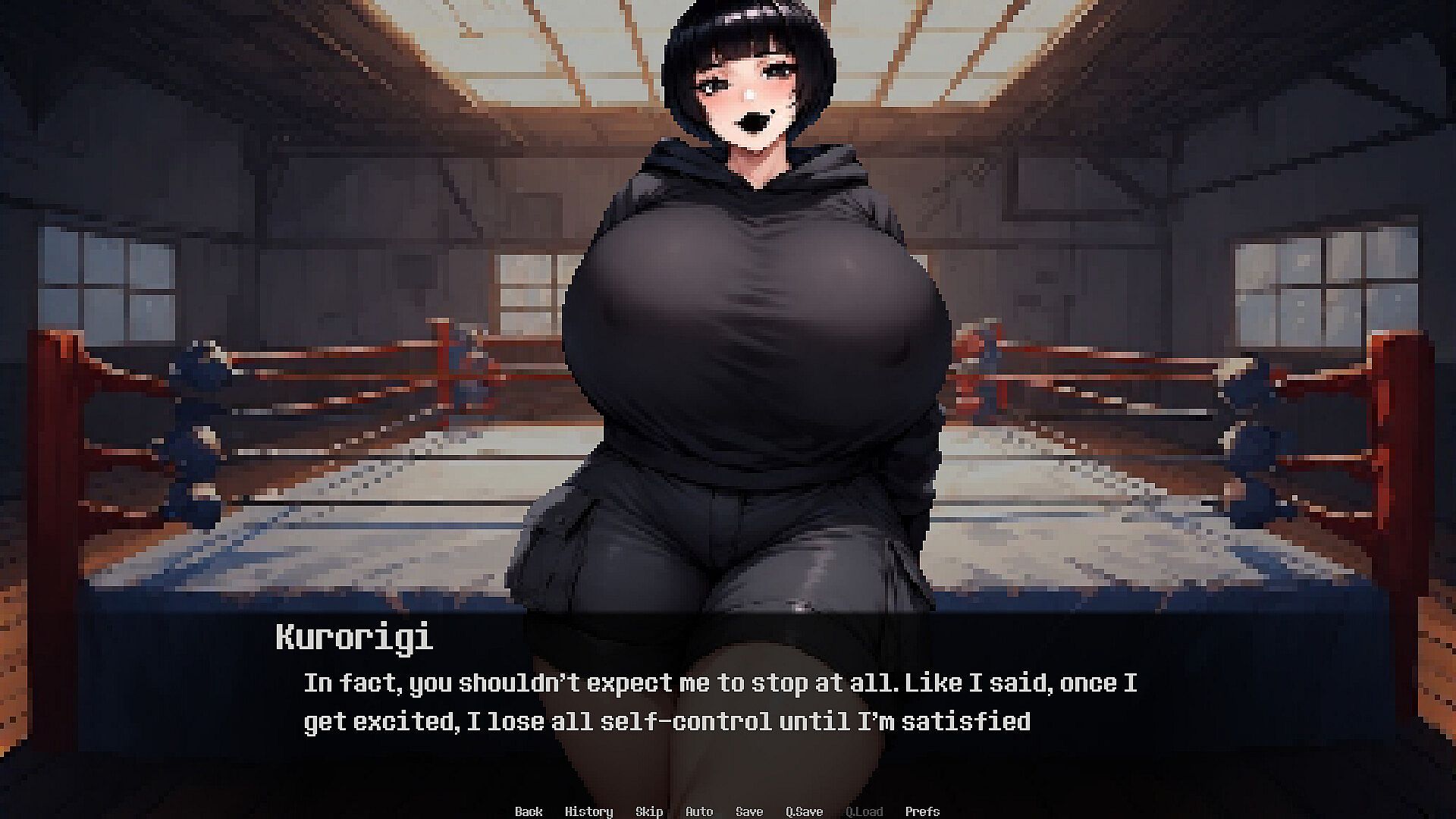 In order to buy treatment for your sick mother, you lied to Kurokara, a 274cm tall, goth gang leader. Once your deception was discovered, you accept an offer to become Kurorigi's sparring partner. Kurorigi is Kurokara's first cousin, and she's a 258cm tall underground boxer with violent, sadistic, yandere tendencies. However, you soon find out that your new giant, yandere, goth, sadistic, violent sparring partner wants to use you as more than just a punching bag, and has deranged sexual plans for you.
