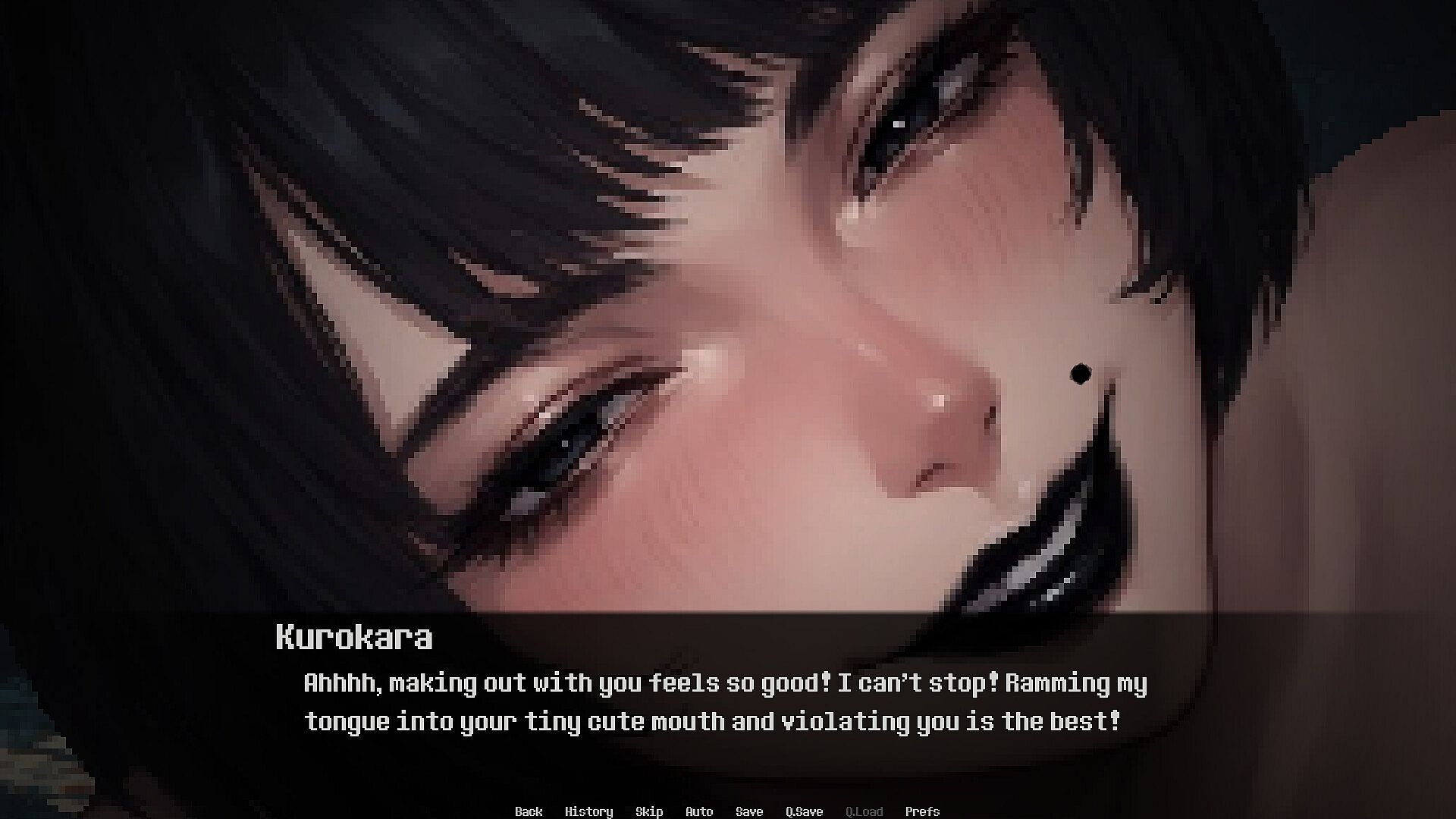 After being choked out in the shower by Kurorigi, you wake up in a hidden bedroom closet in Kurorigi's gym with Kurokara waiting by your side. As Kurokara expresses her love for you, you'll have to endure her sadistic love only a few hours after being choked out by Kurorigi. Although she's 28 years older than Kurorigi, Kurokara's sadism, love, energy, and enthusiasm is equal to, if not even greater than Kurorigi's. Experience what it's like to have a 274cm tall, violent, sadistic, yandere, goth gangster be obsessively in love with you.