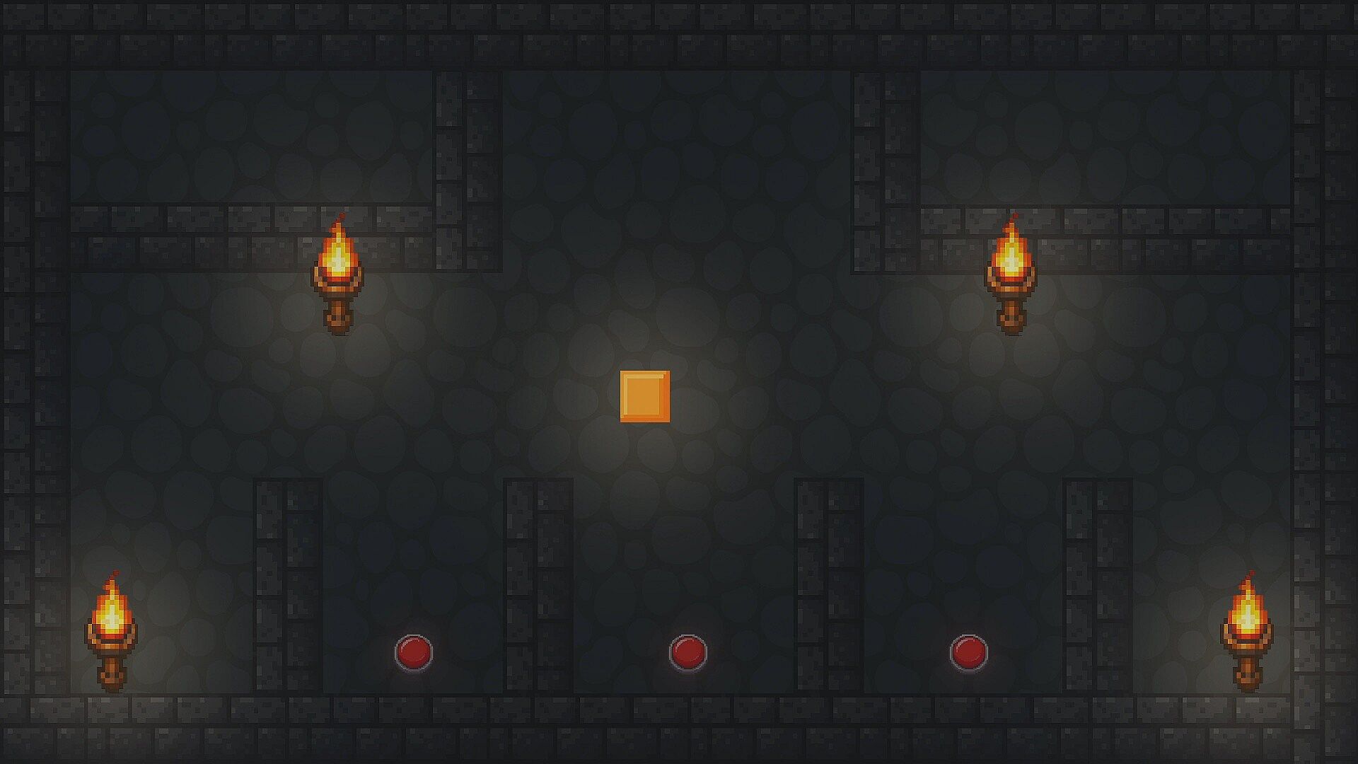 You control a small square using WASD — use Shift to run, dodge traps, solve puzzles, and find the right button to move forward.