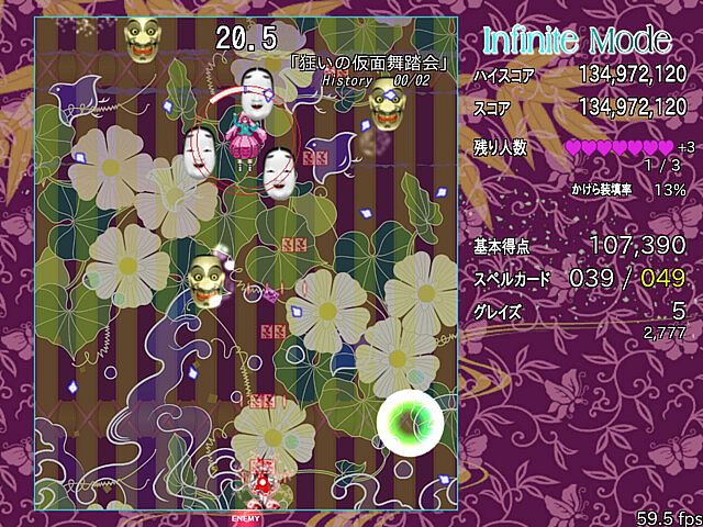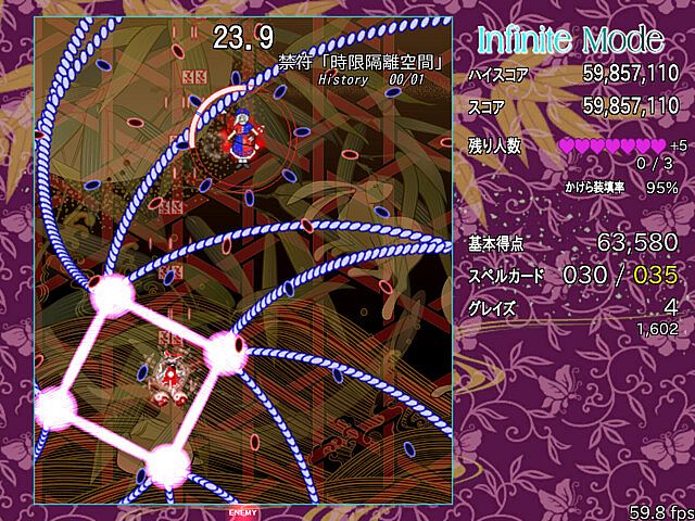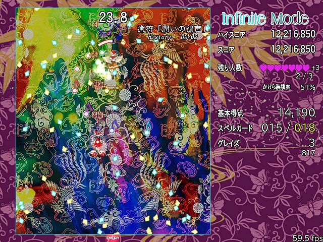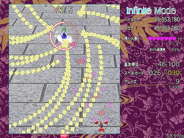 以前のバージョンのセーブデータを使用するとInfiniteModeでの取得数が霊夢の取得数に、
