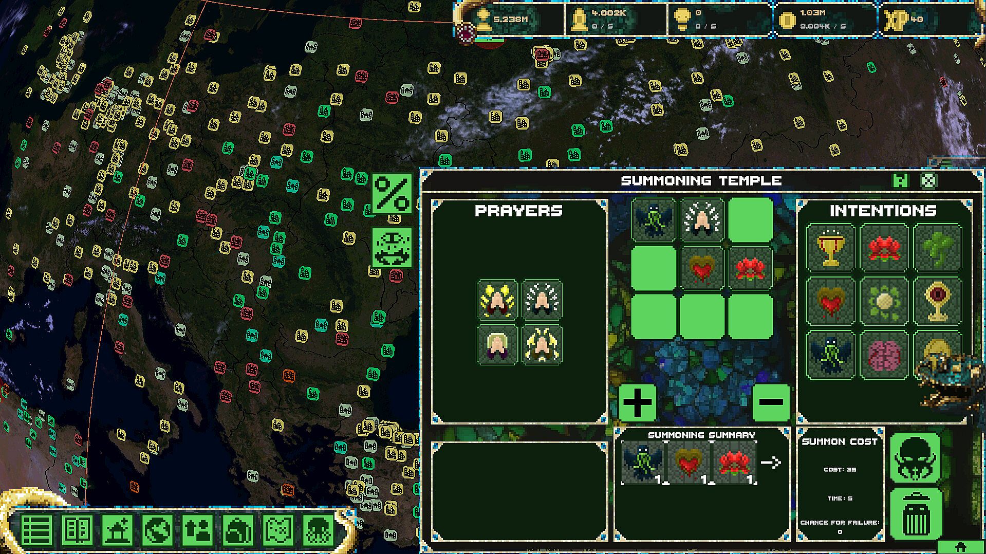 Managing Cult Branches: Construct buildings, place relics, and upgrade your main cultist or summoned entities. These branches are central to your expansion strategy, as they allow you to recruit new cultists and send out expeditions.
