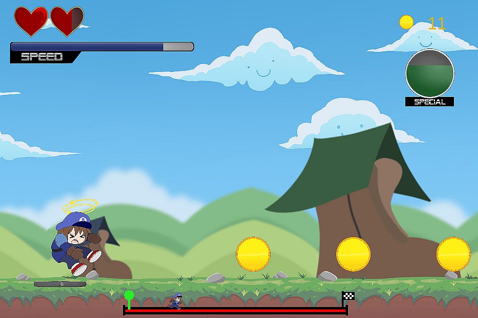Don't Save the Princess is an inverted runner in which you control the obstacles instead of the running character. Properly time and combo spikes, smashers, and projectiles in order to slow down Runman level after level. Hold him off for long enough and you'll unlock new dialogue scenes... and maybe Princess Plum will finally get some time to relax.