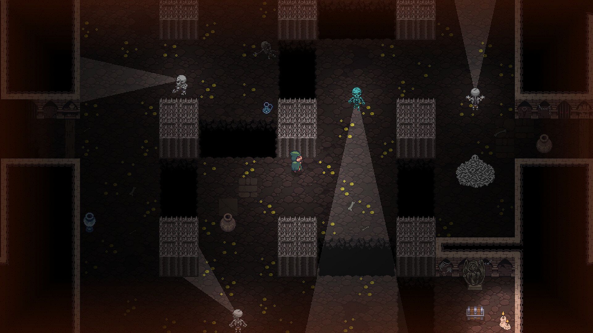 Use your trusty grappling hook to interact with the environment, solve puzzles, and avoid traps. This unique tool gives you creative freedom to navigate procedurally generated dungeons and evade enemies in exciting ways.