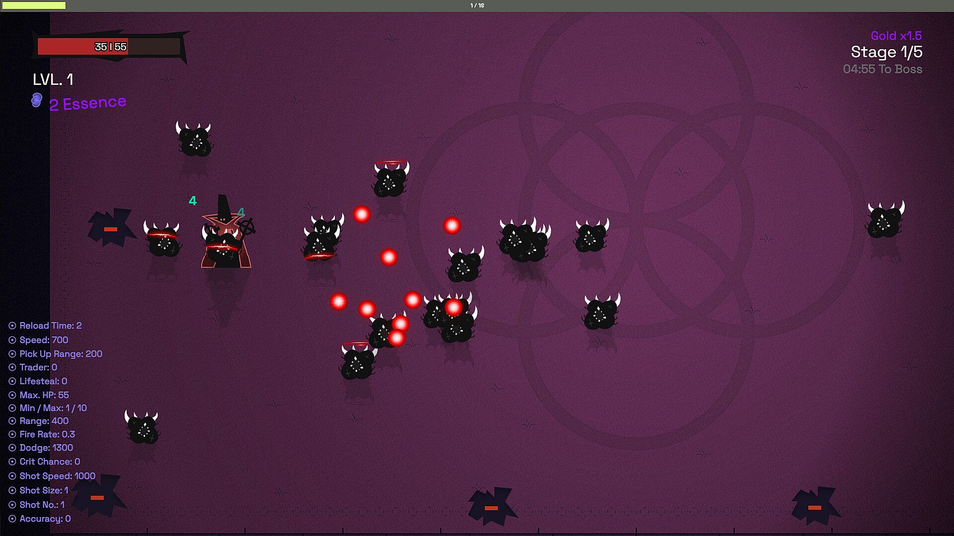 Earn experience to level up during each run, and collect gold to spend at the shopkeeper or unlock meta progression